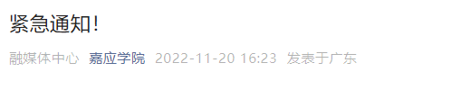 今日,嘉应学院发布紧急通知,因揭阳市来梅2例新冠肺炎阳性个案活动轨迹涉及学校江北校区周边部分地区,11月20-22日,江北校区实行校园封闭管理,暂停线下教学,实行线上教学。