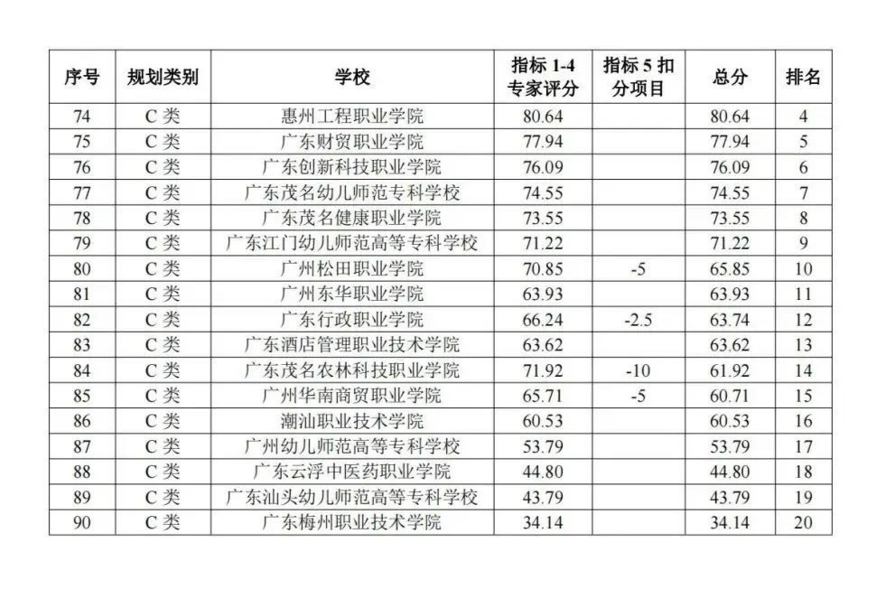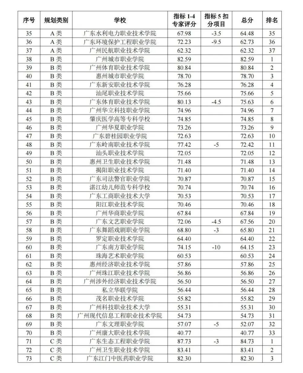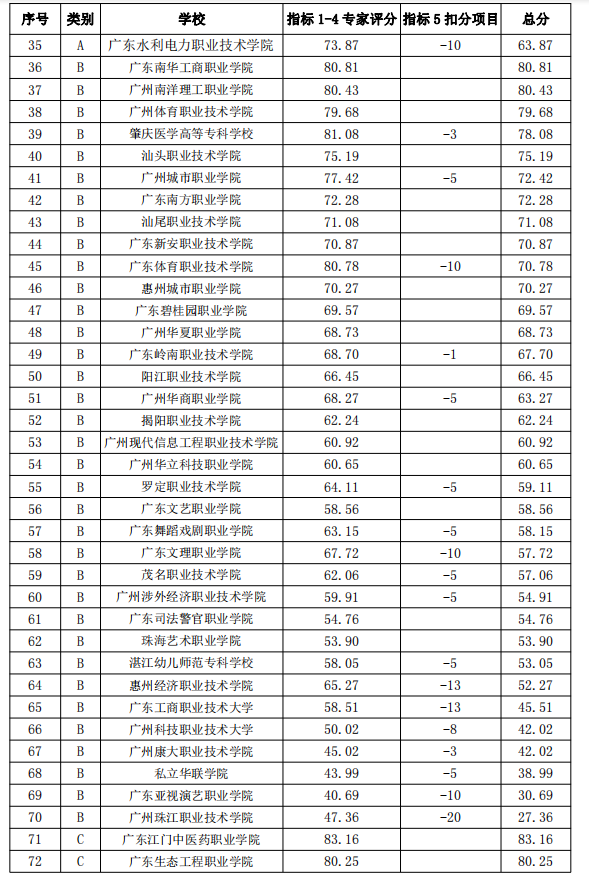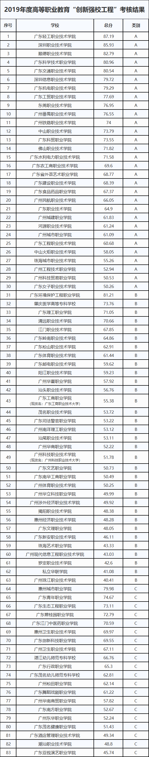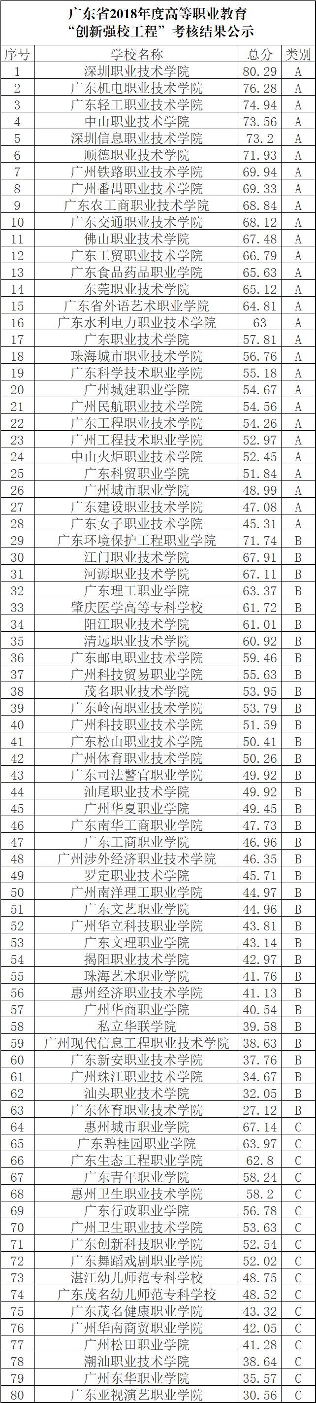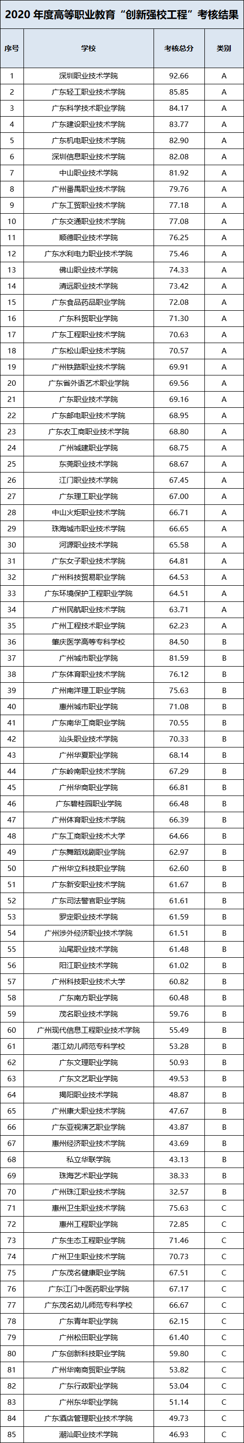 而名单中的A、B、C等级是根据此次“创新强校工程”的考核标准评选出来的。(学校自评。各高职院校根据《A、B、C类规划考核指标(试行)》进行自评,再由专家审核。)