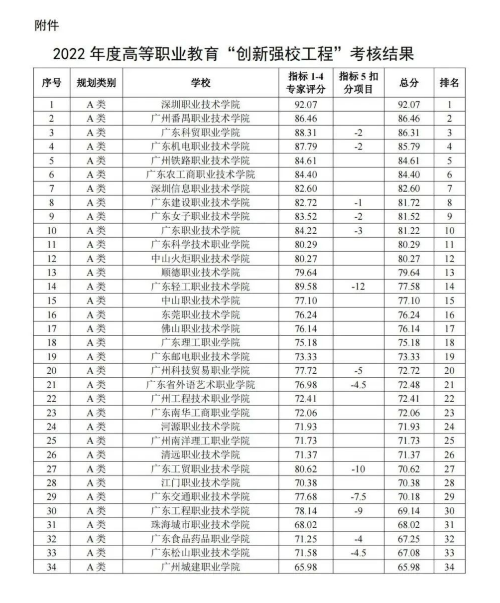 广东省教育厅公布了2022年度高等职业教育“创新强校工程”考核结果名单。对于参考“3+证书”选择学校来说,这份“创新强校工程”考核结果绝对是一份权威的择校参考。想知道各校考核排名如何?赶紧往下看吧!