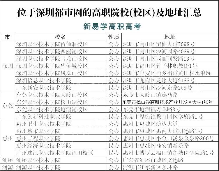 很多3+证书高职高考热门院校,如深圳职业技术学院、深圳信息职业技术学院、中山职业技术学院、顺德职业技术学院等都在这三个都市圈,如果喜欢大都市的考生可以考虑报考这三个都市圈的学校哦。