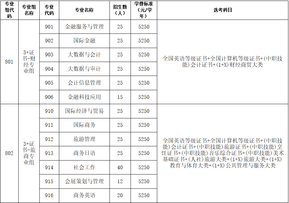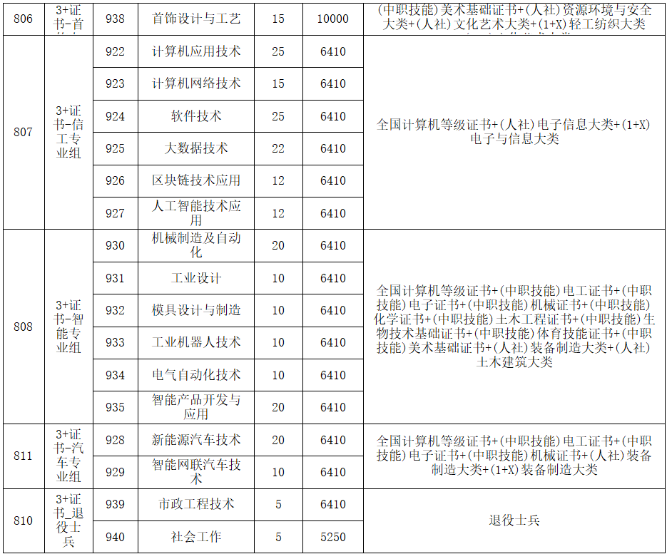 (二)招生类型:“3+证书”考试招生(含退役士兵招生)