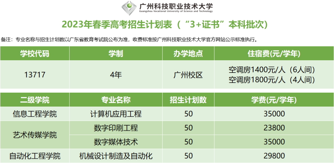 报考我校“3+证书”本科专业的考生,全省统一文化科目考试总分须达到省招生办划定的本科批次最低录取最低控制分数线,且须在“3+证书”本科批次志愿填报我校。志愿填报具体时间要求详见广东省招办通知。