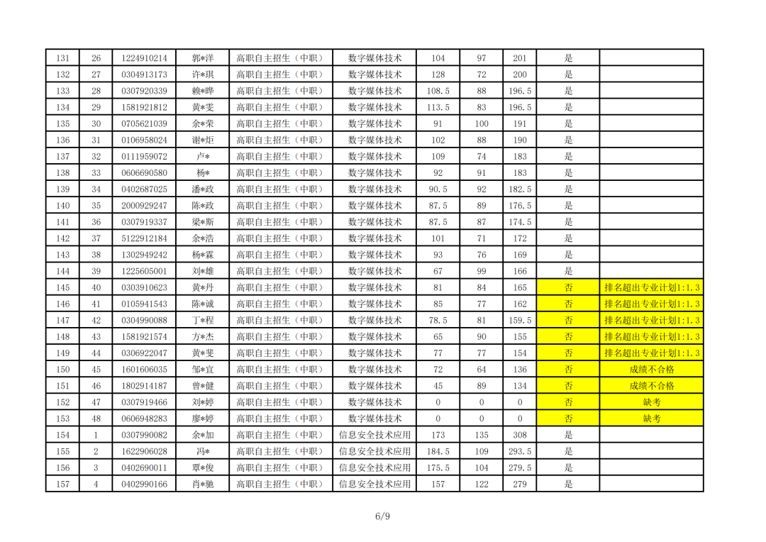 此前,广东体育职业技术学院、广东科学技术职业学院、广州民航职业技术学院、广东农工商职业技术学院、广州卫生职业技术学院、广州体育职业技术学院已公示2023年自主招生考试成绩。