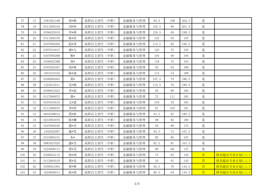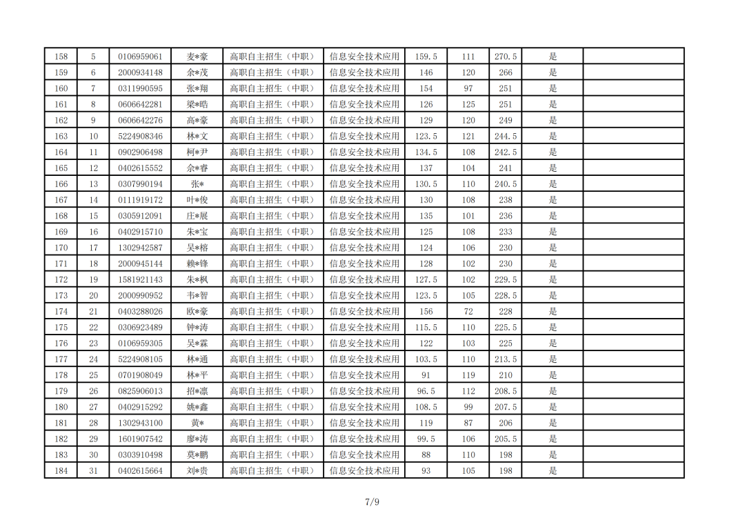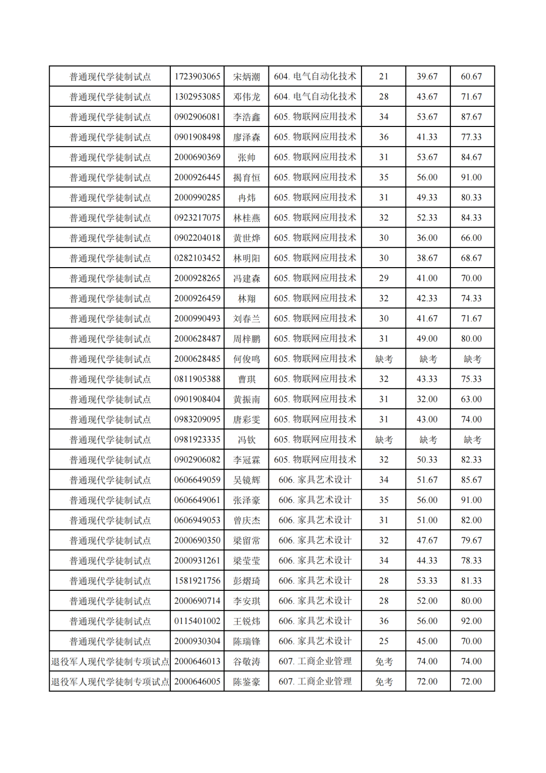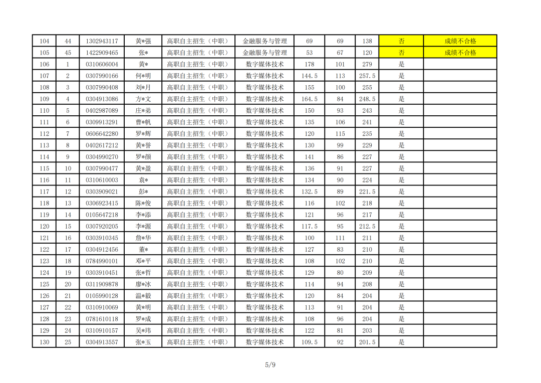 附件1:广东工贸职业技术学院2023年自主招生成绩公示名单