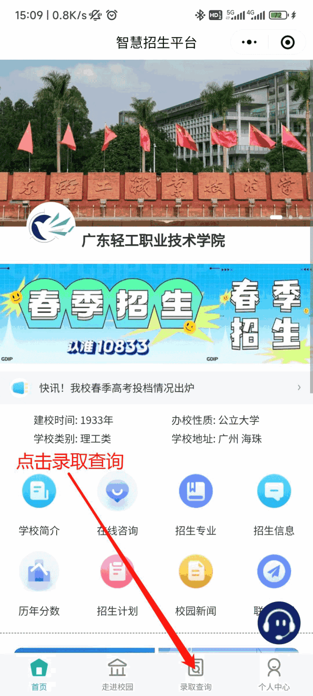 点击录取通知书查询