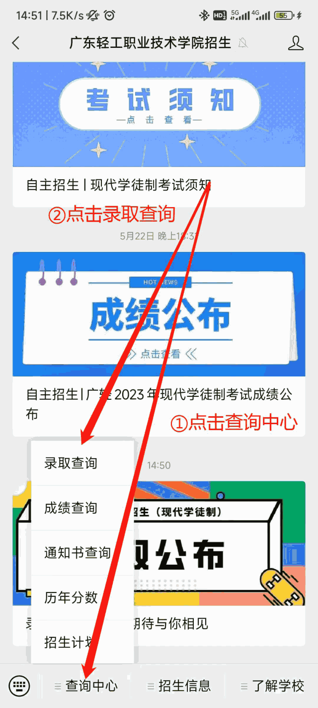 点击[录取通知书查询]