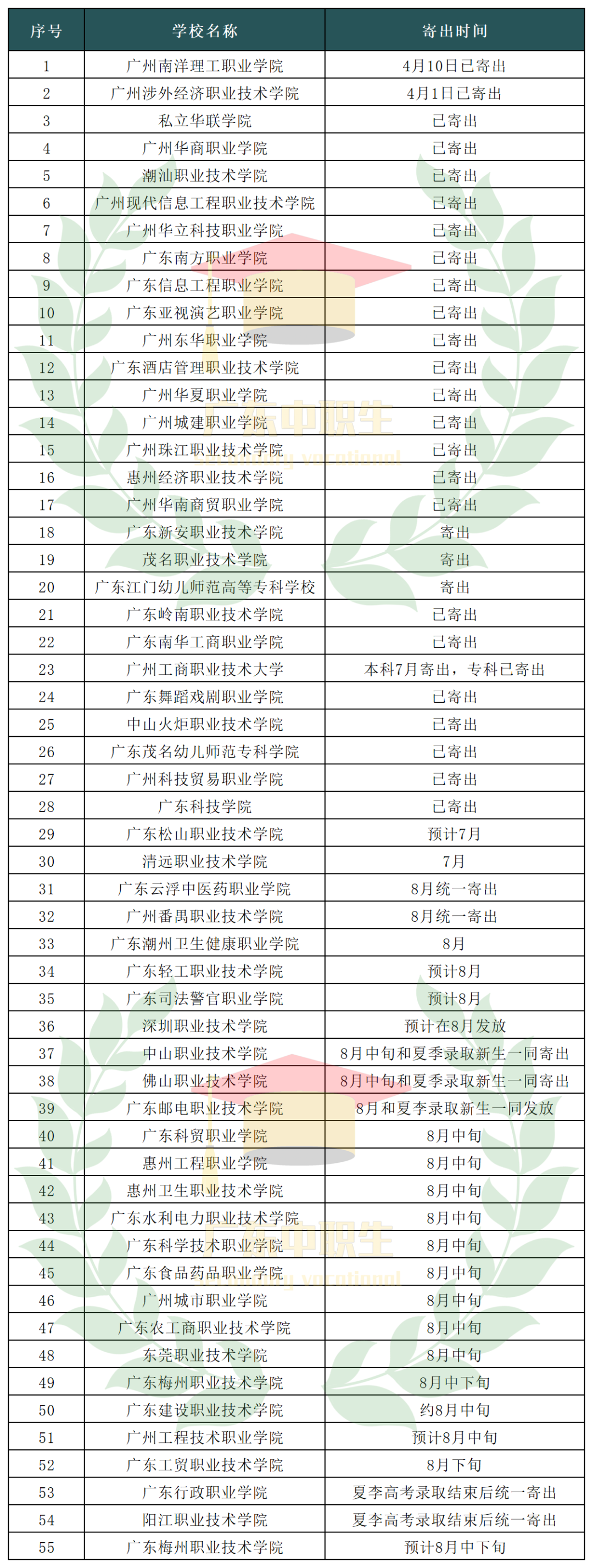 被我校春季高考录取的考生录取通知书计划于8月下旬与夏季高考录取考生一起通过邮政EMS快递寄出。录取通知书联系方式和邮寄地址如有变化的考生,请于2023年7月31日前将更正信息发至我校招生办邮箱(zsb@gdgm.edu.cn)。逾期不再受理信息修改,请知悉!