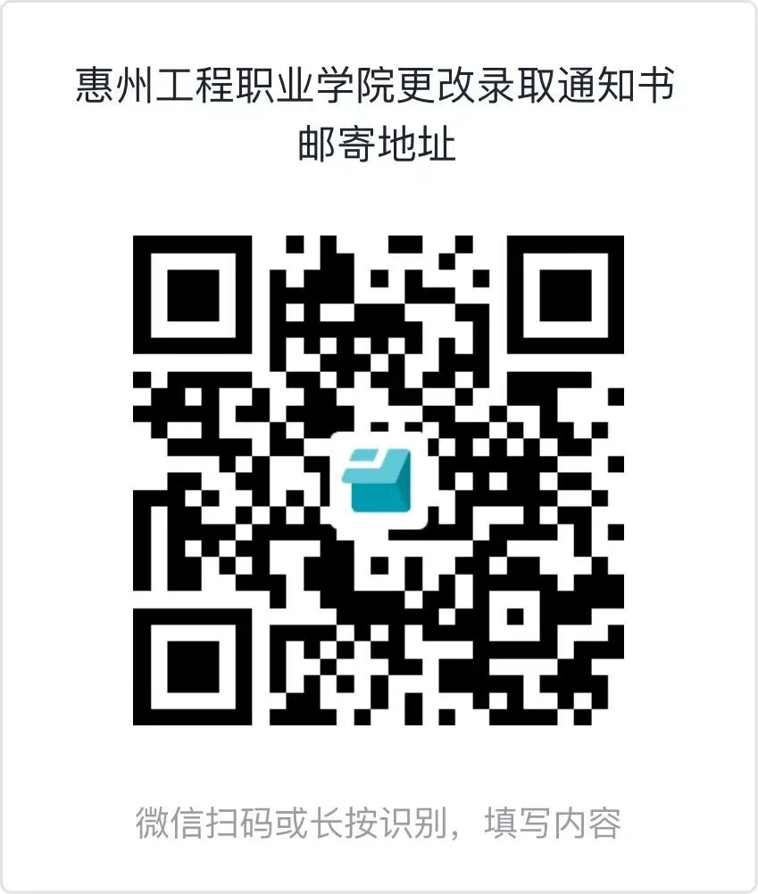 “依学考”、“3+证书”、“中高职三二分段”“现代学徒制”的同学如需更改《录取通知书》的邮寄信息,请于8月1日24:00前扫描下方二维码登记,逾期不再受理。