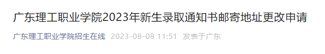 8月中旬寄出!广东理工职业学院新生录取通知书邮寄地址更改申请