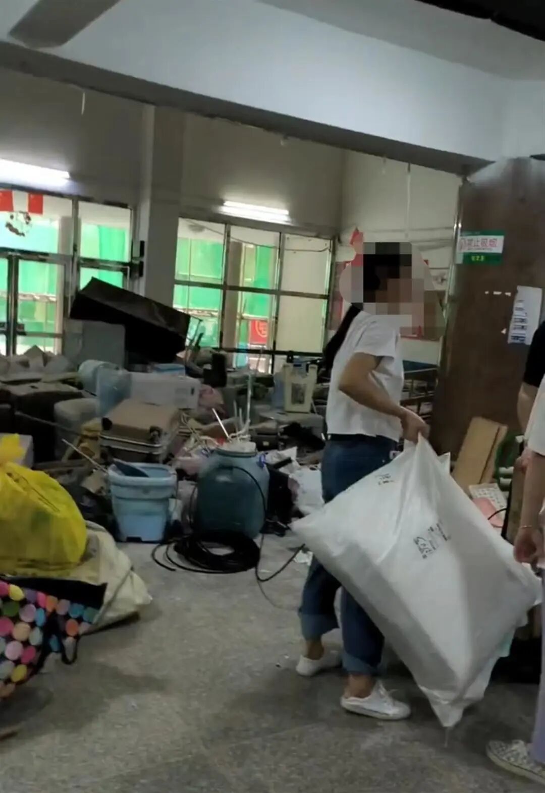 另有视频显示,有学生小心翼翼地穿过脚手架从宿舍楼大门进入,宿舍大厅满是装修材料和装修垃圾,还有学生撞见工人正在给自己的宿舍墙面刷漆。