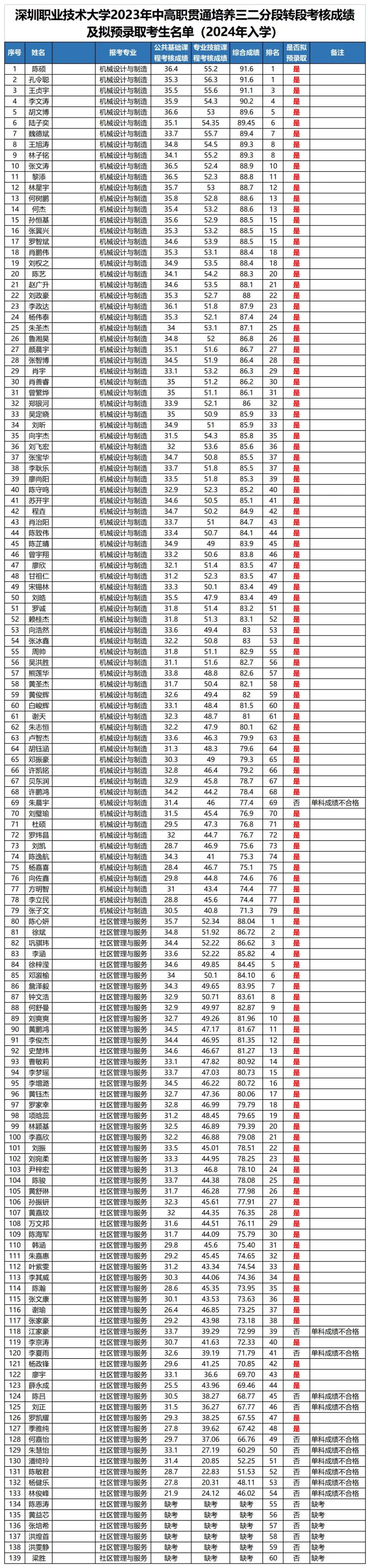 院校动态 > 深职大三二分段转段考核成绩/拟预录取考生名单公布!恭喜这些同学