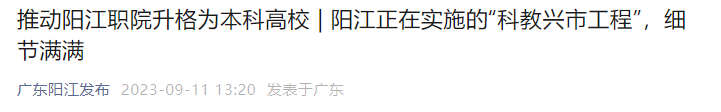 官宣!推动阳江职院升格本科大学!这些3+高校升本指日可待!