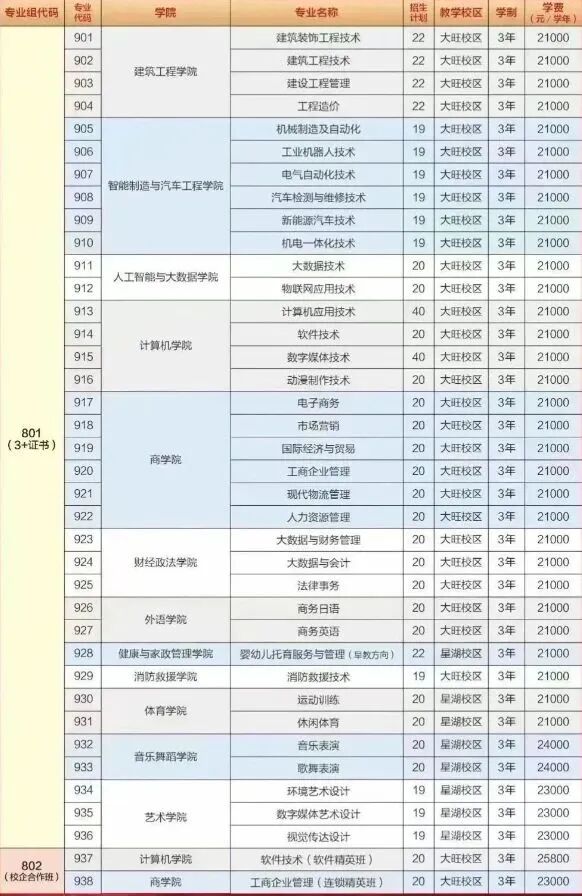 各专业录取最低分:大数据工程技术专业,合成总分录取最低分281.69;健康管理专业,合成总分录取最低分321.40;机械设计制造与机动化,合成总分录取最低分298.30;新能源汽车工程技术,合成总分录取最低分306.40。