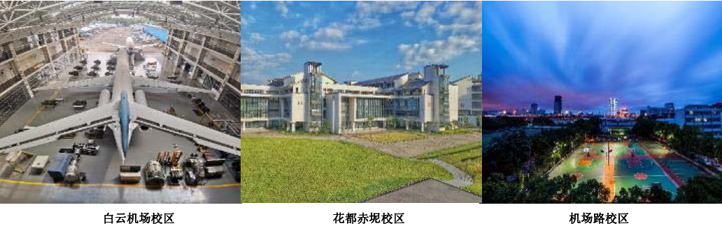 白云机场校区:紧邻广州白云国际机场和民航维修单位,是全国最大的飞机维修专业实训基地,承担飞机维修专业学历教育及培训服务。