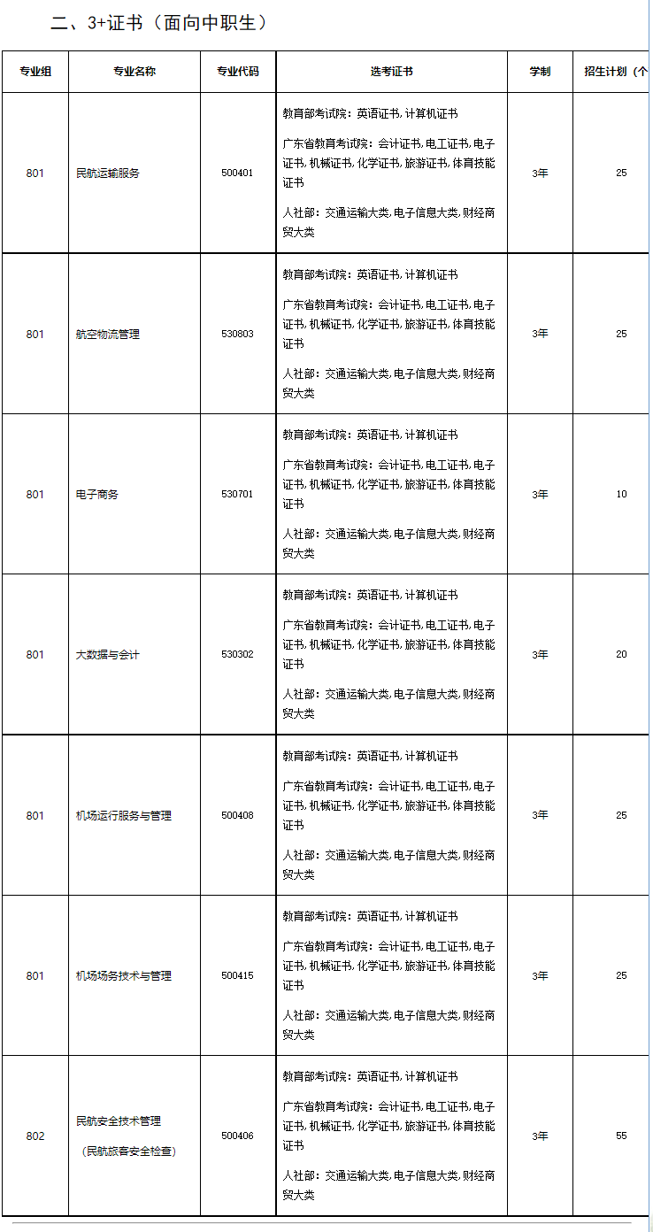 2023年“3+证书”招生计划