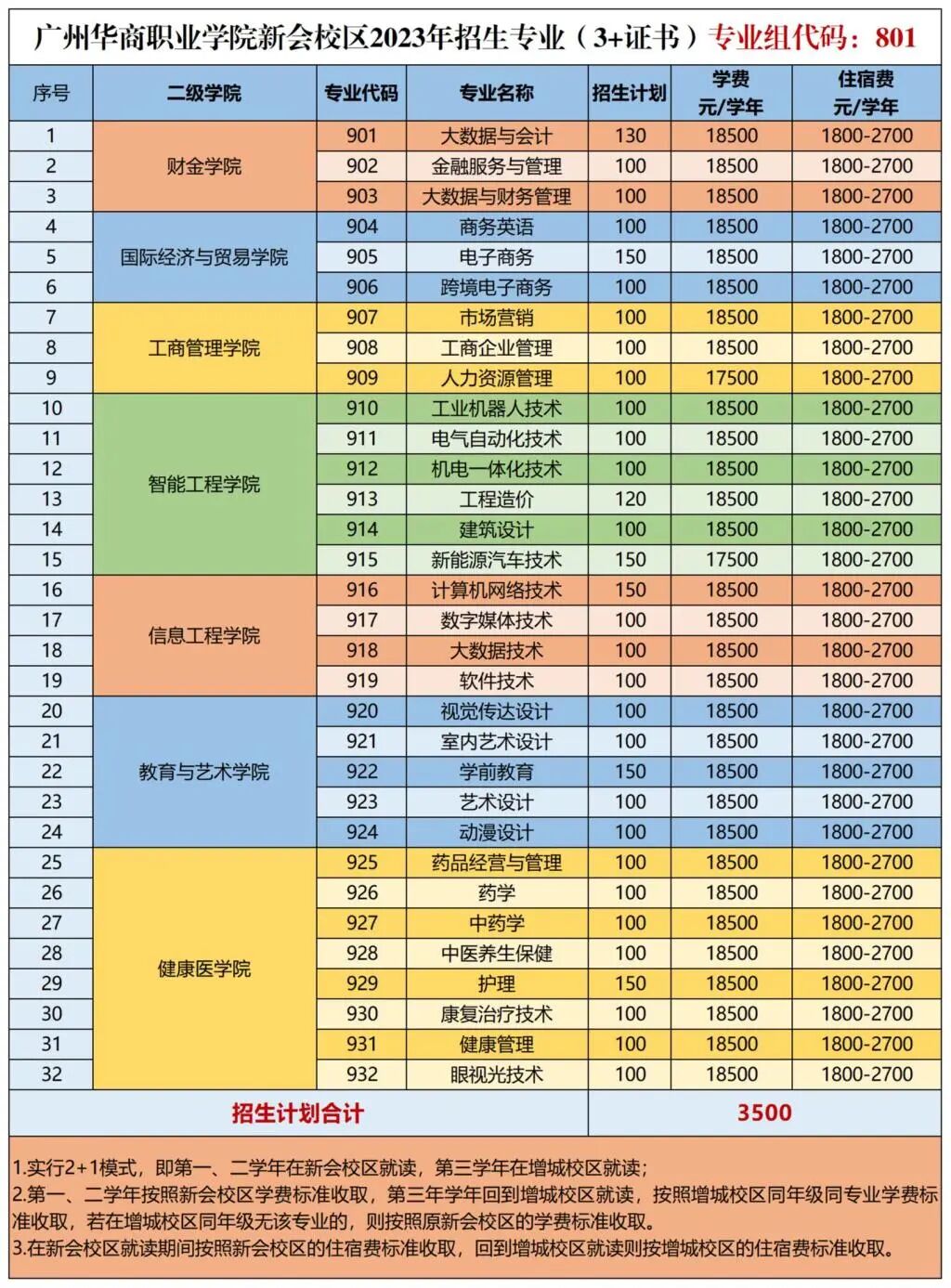 2023年“3+证书”招生计划(增城校区)