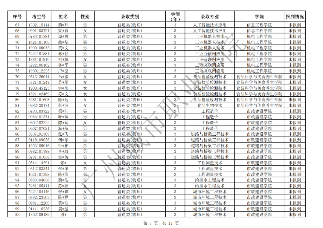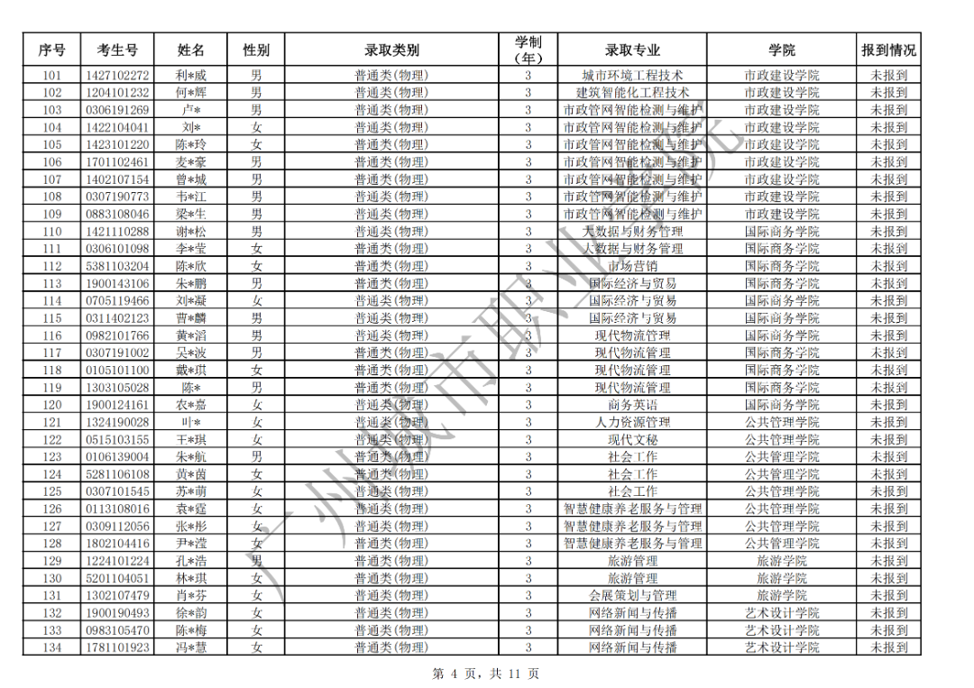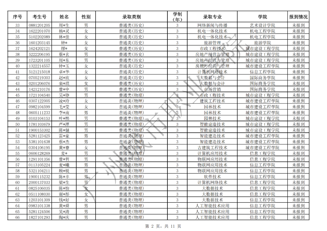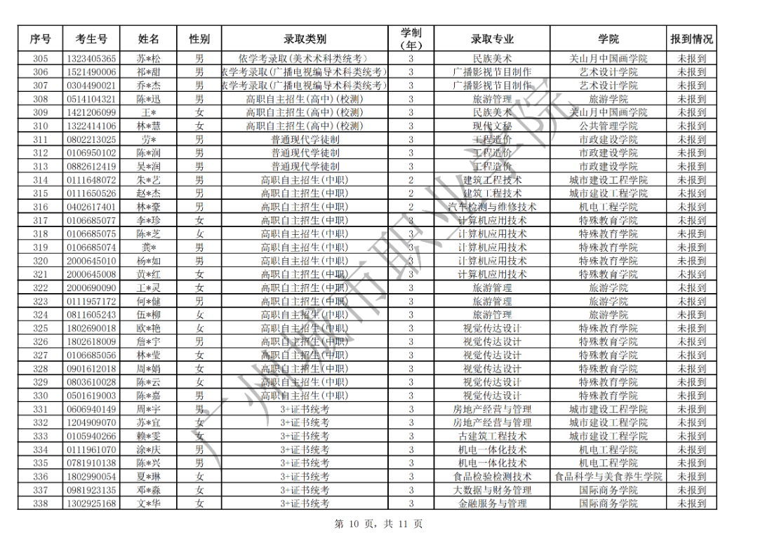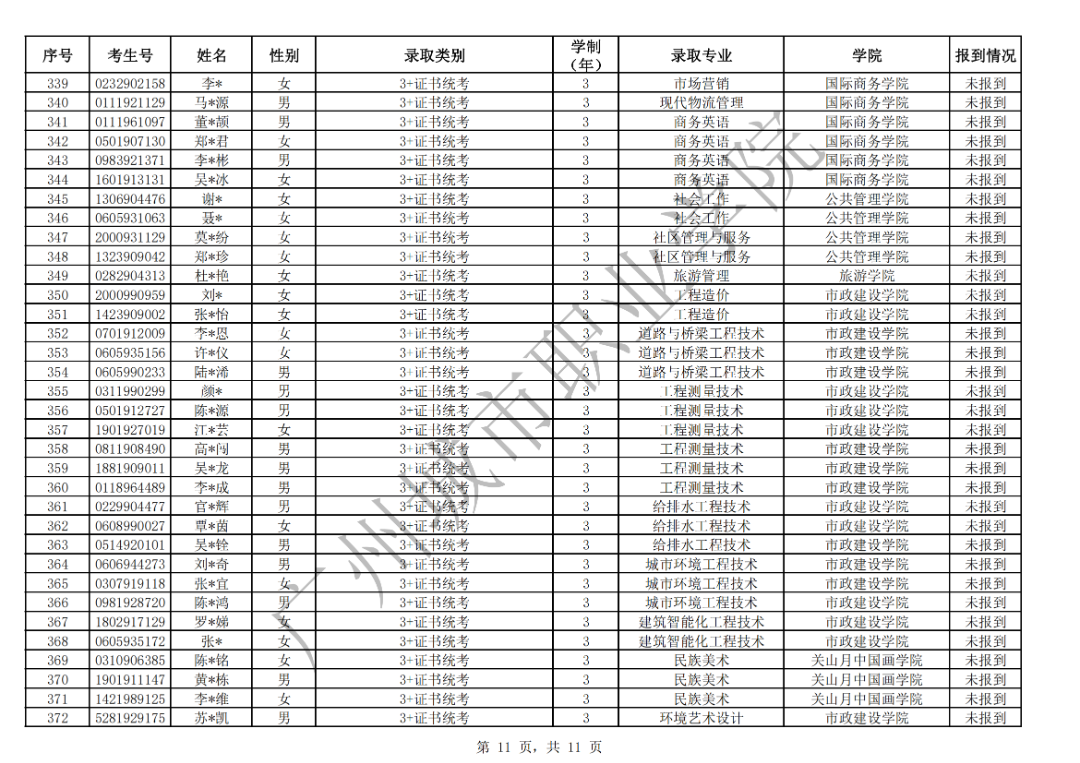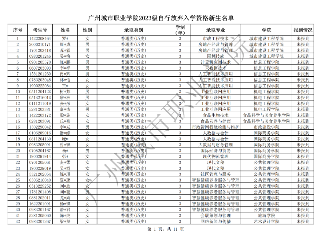 广州城市职业学院公布关于2023年未报到新生自行放弃入学资格注销名单的公示。其中有372人放弃入学资格。具体内容如下: