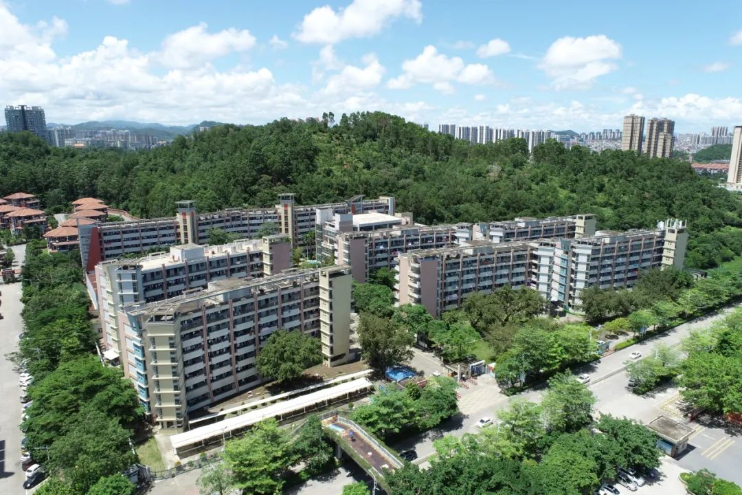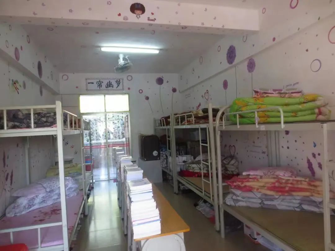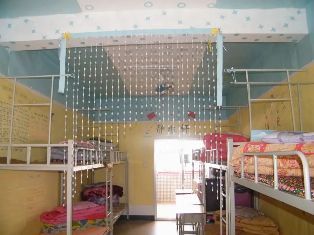 南区,5栋宿舍楼。南区一二栋有部分为6人间,上床下桌,大部分是8人间,上下床;南区三四栋是8人间,上下床。每间宿舍空调1台,吊扇2台,桌椅每人1张,柜子每人1个,都有独立厕所和沐浴室。