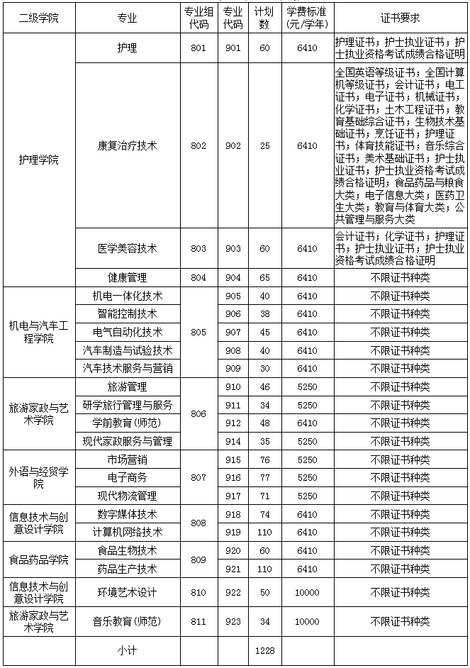 2023年“3+证书”招生计划(中职生)