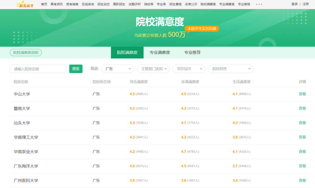 阳光高考网有根据在校学生,对学校的满意度投票出来的结果,整理了2023年广东高校(专科)满意度排行榜(数据截止至2023/10/28),给大家提供来自广大学子对其院校的评价参考。