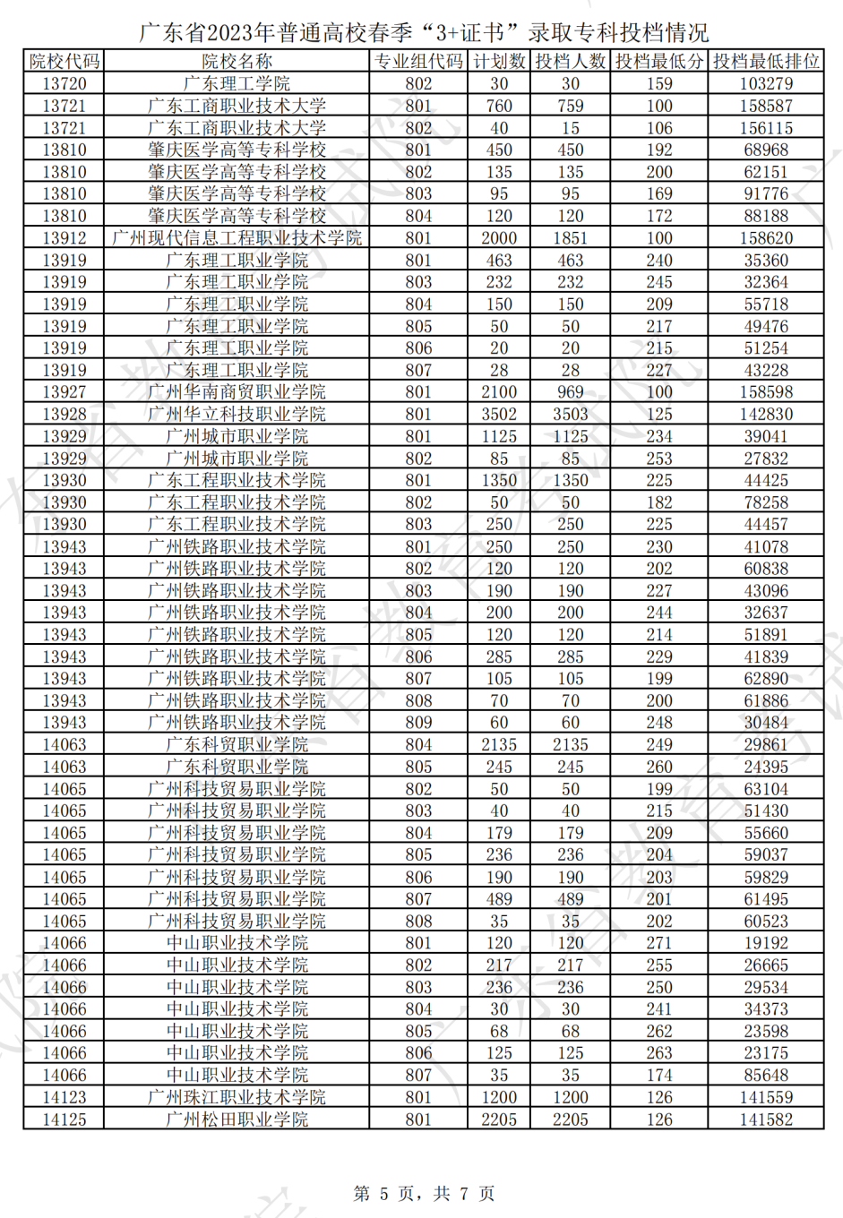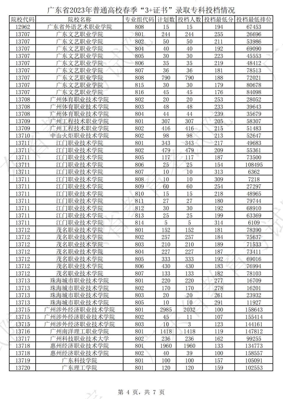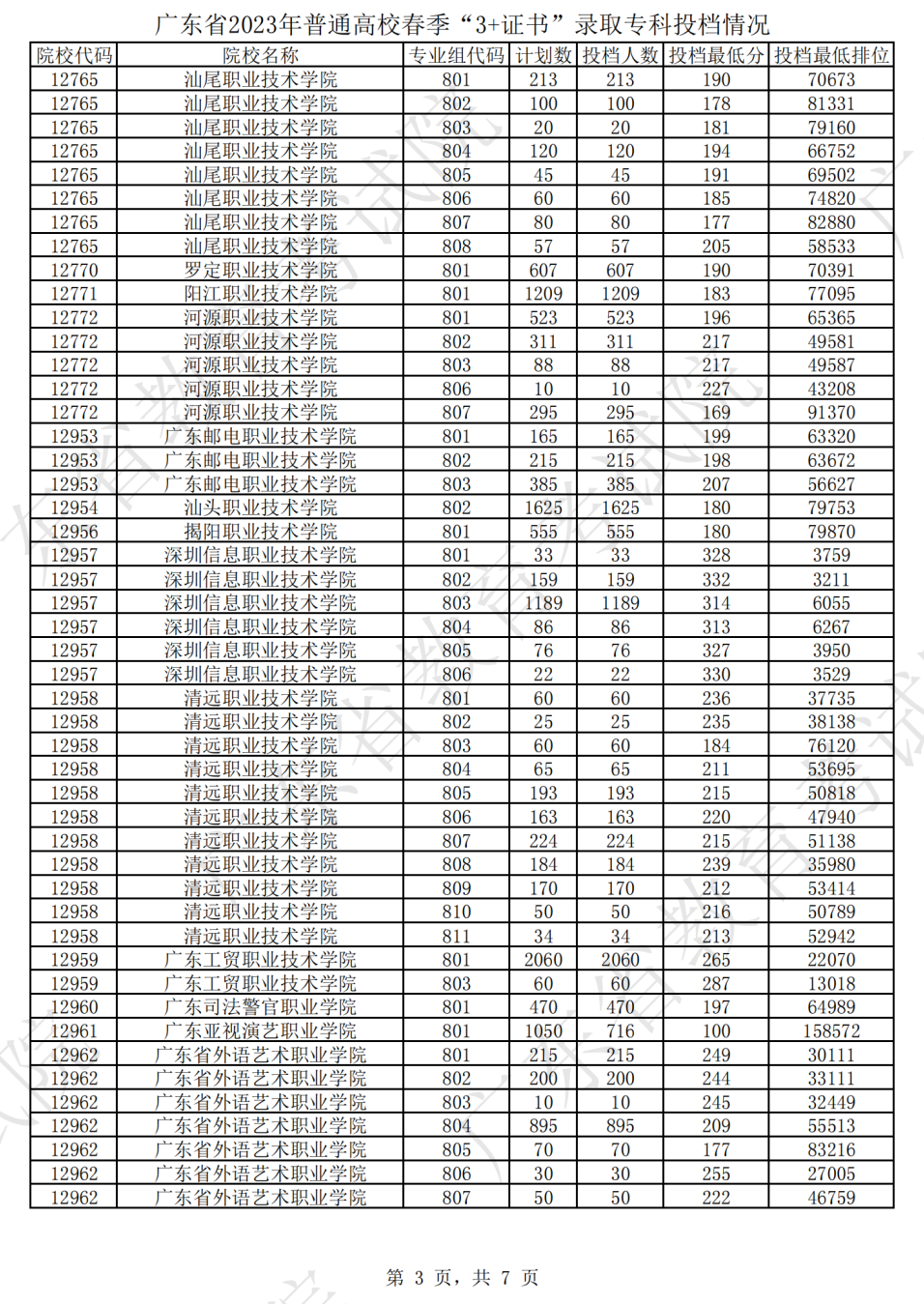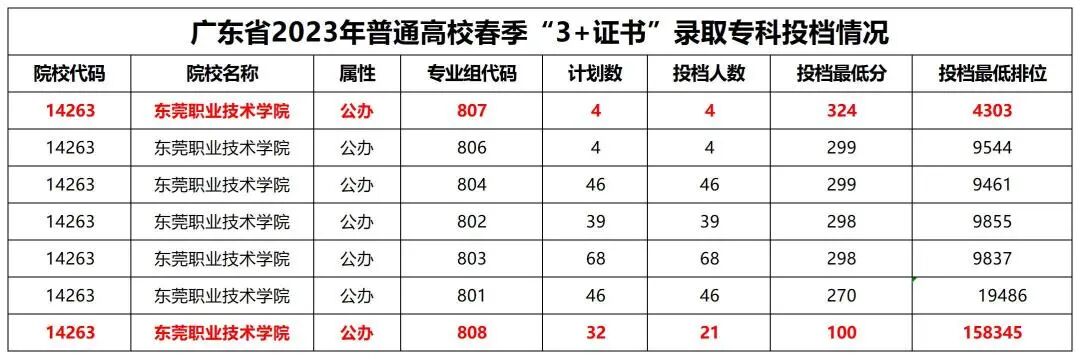 根据2023年3+证书的录取投档结果显示