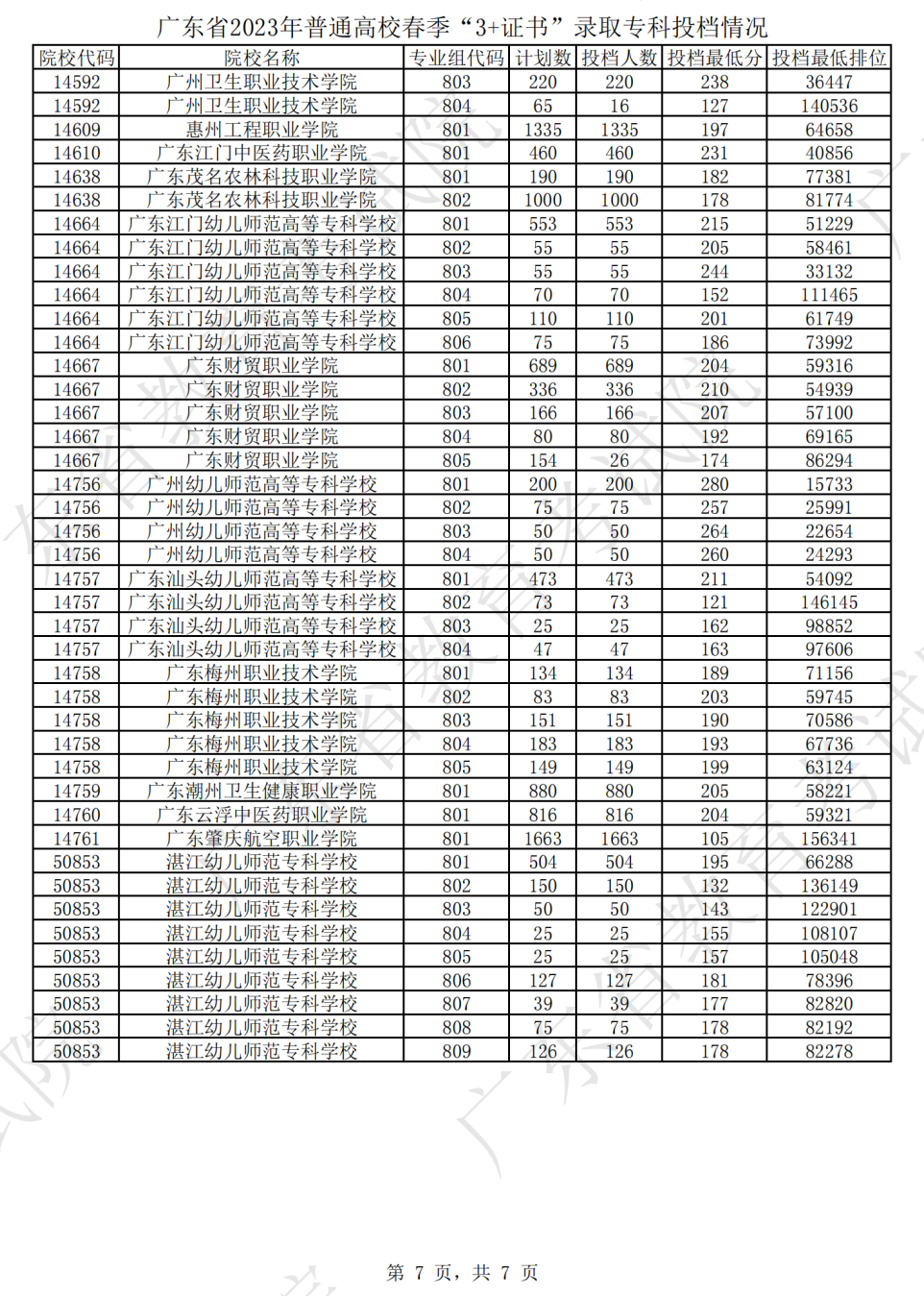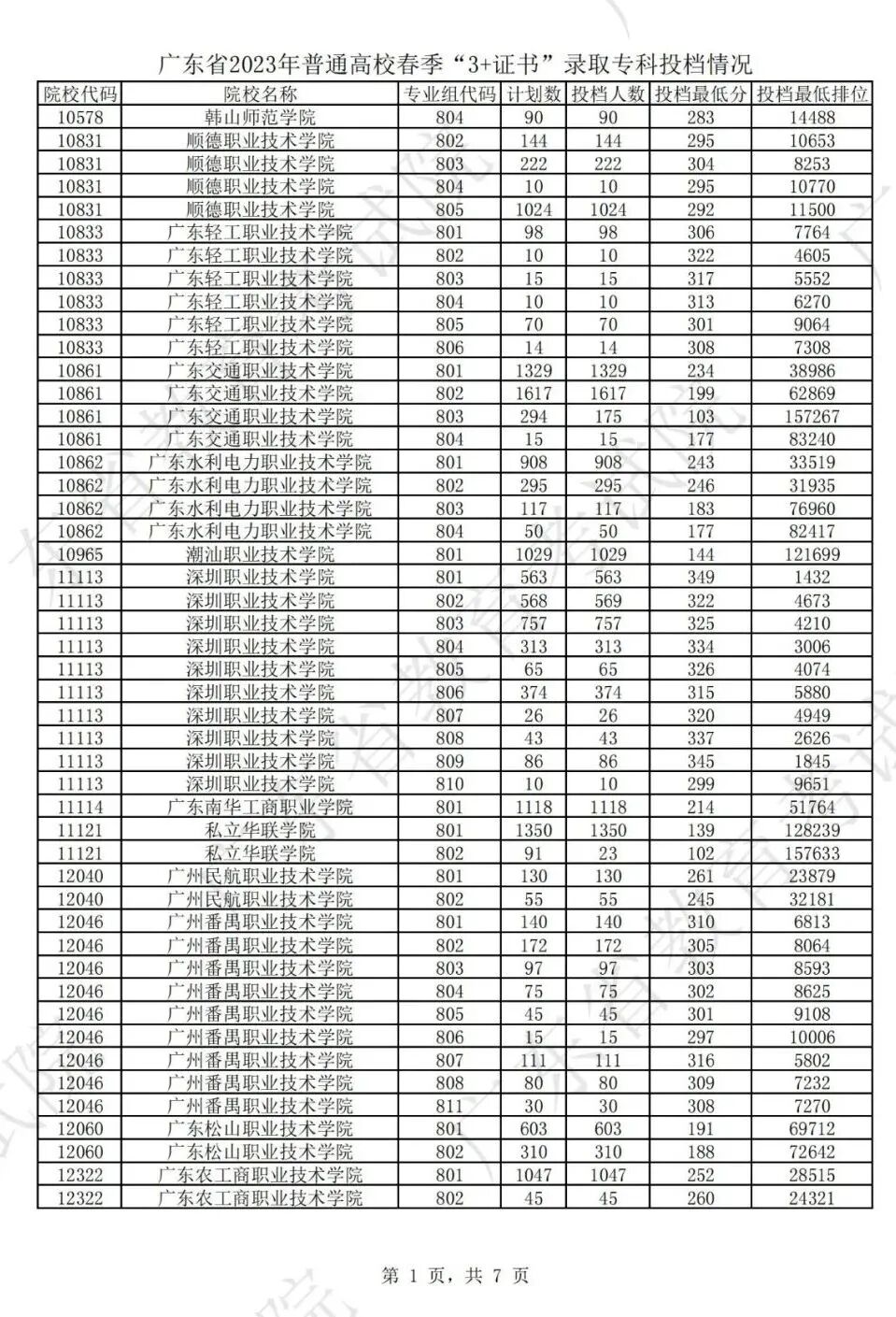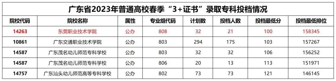 2023年“3+证书”第一次投档结果!