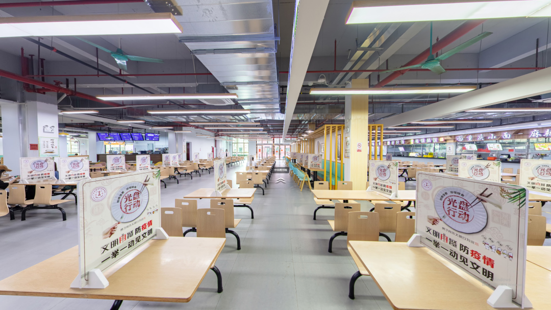 学校有航天食堂、德润食府两个食堂,食堂菜品种类丰富,粤菜、湘菜、新疆特色美食等应有尽有。
