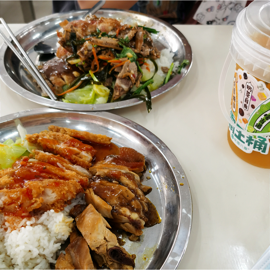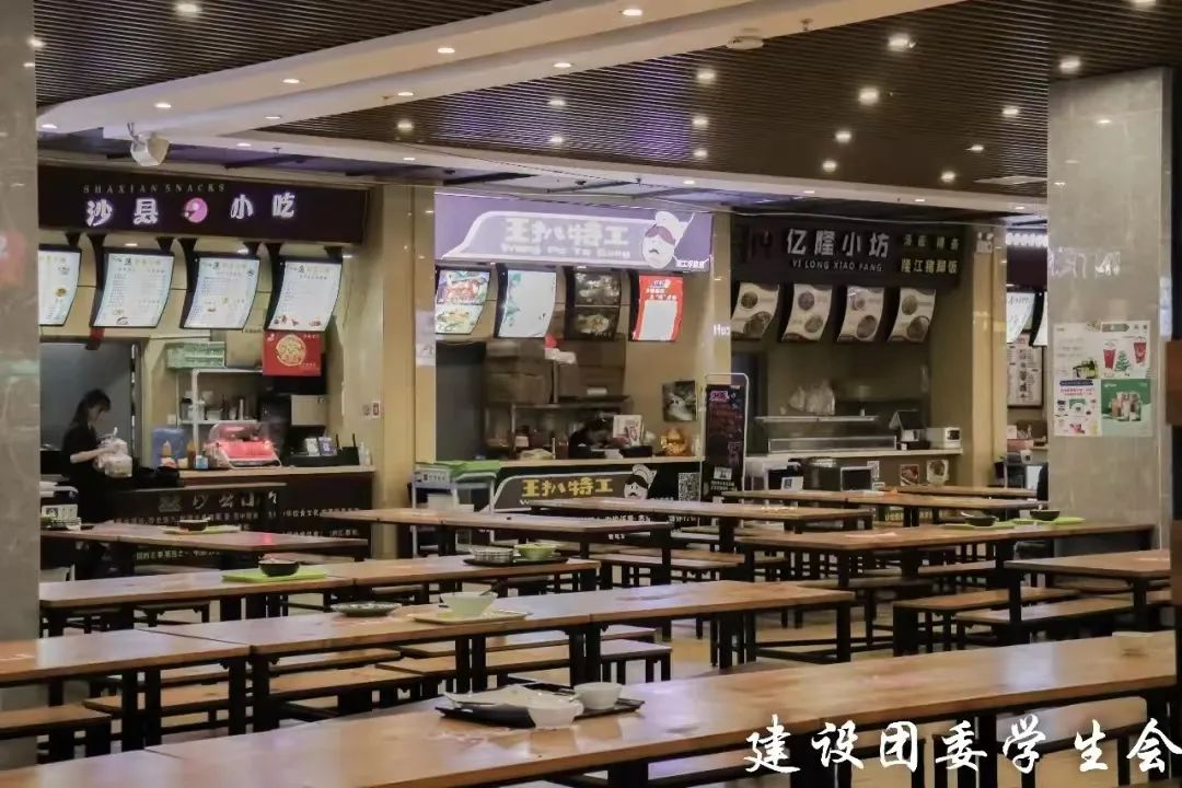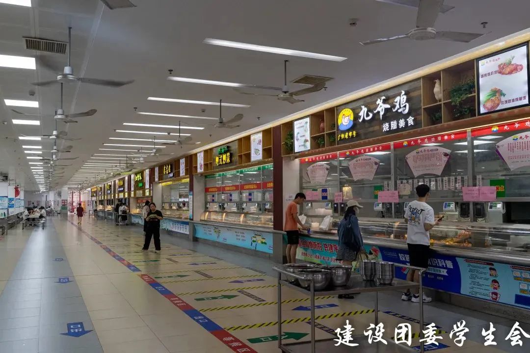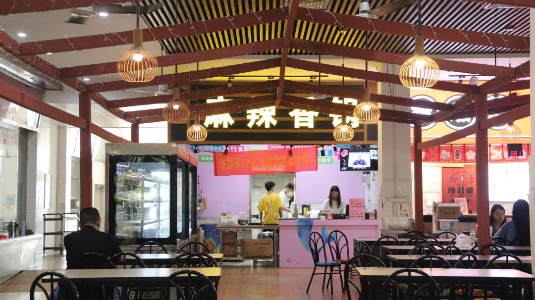 鼎湖校区饭堂一二楼美食多以自选菜为主,通过扫描微信绑定的校园码就可品尝到美食。学校的美食广场汇聚了各地的特色美食并开有奶茶店和水果捞。