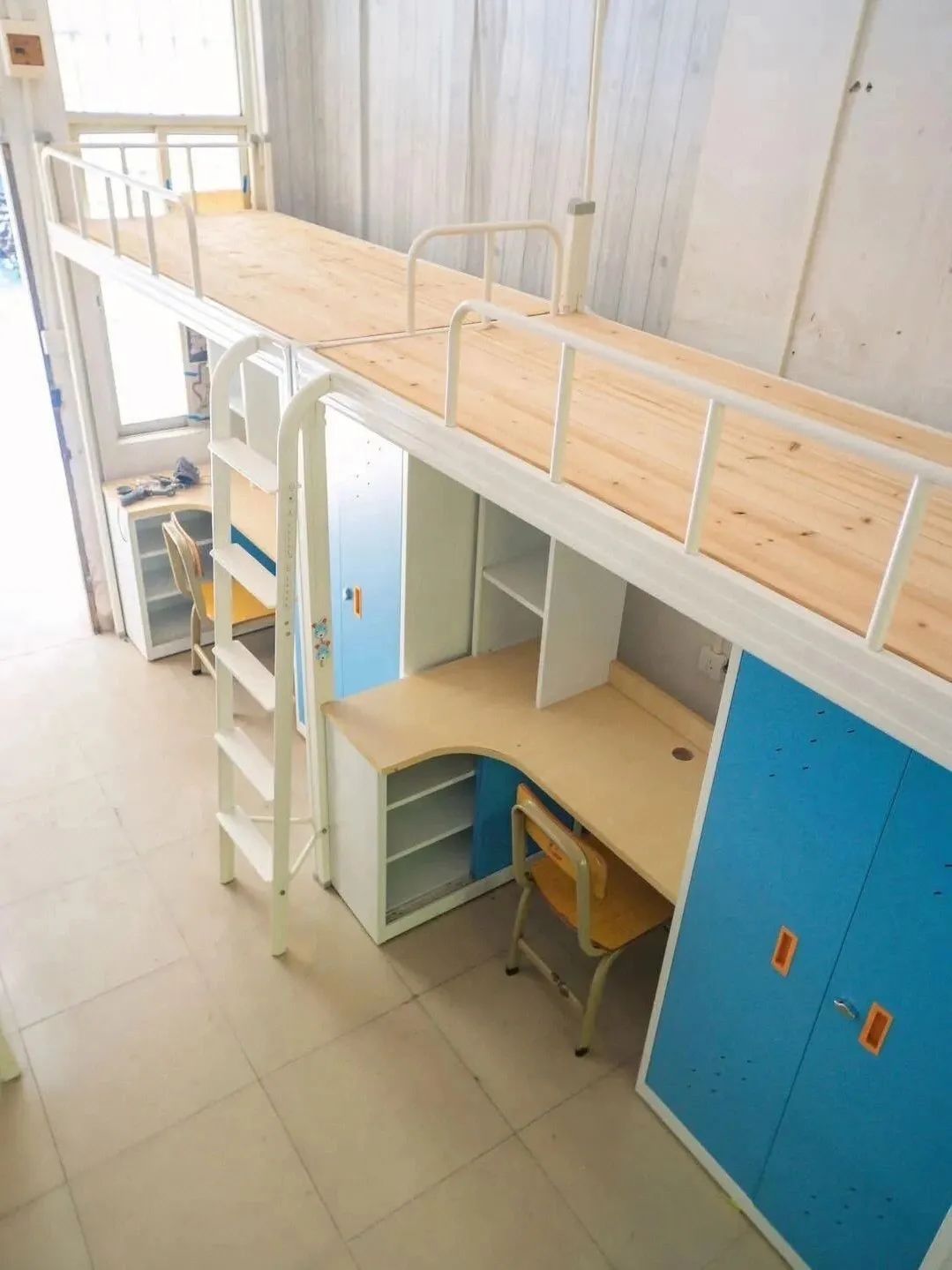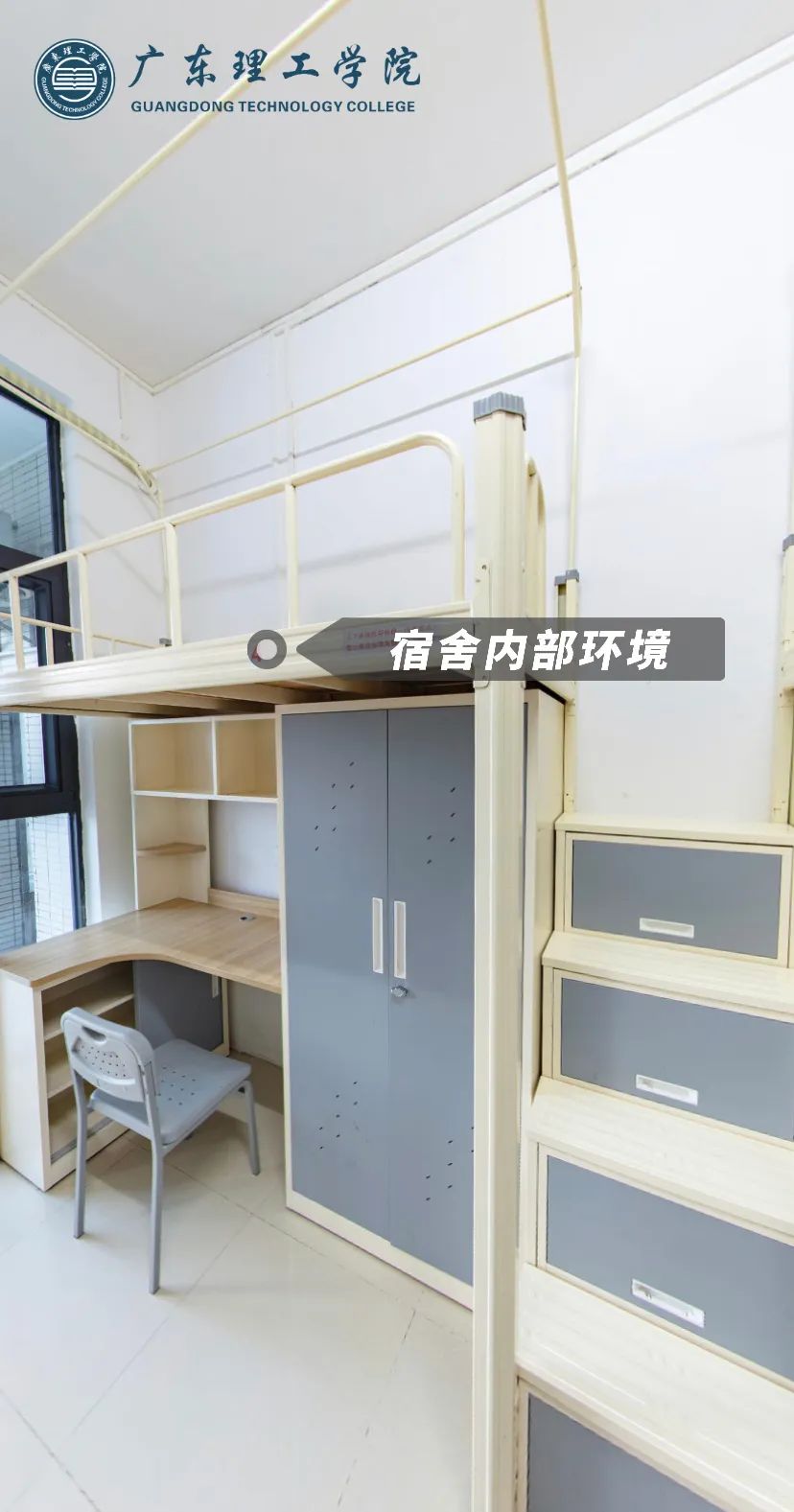 鼎湖校区的宿舍分为:普通4人间、豪华4人间,宿舍都配有独立厕所独立洗澡间,独立阳台,有空调、饮水机;上床下桌,配有椅子,储物柜,书柜,有独立网线接口,插座,设备齐全。