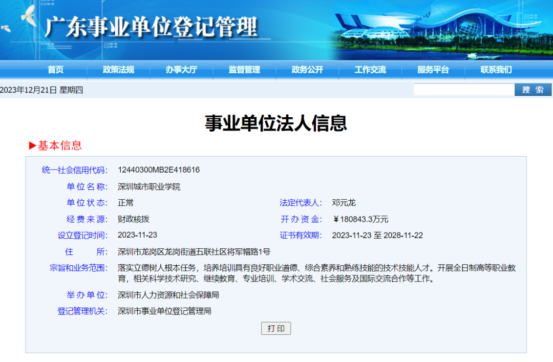 深圳城市职业学院已设立登记
