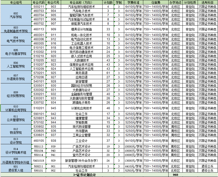 “3+证书”招生计划