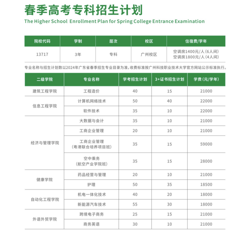 广东信息工程职业学院2024年春考共开设4个院系招生,官方未公布具体招生计划。