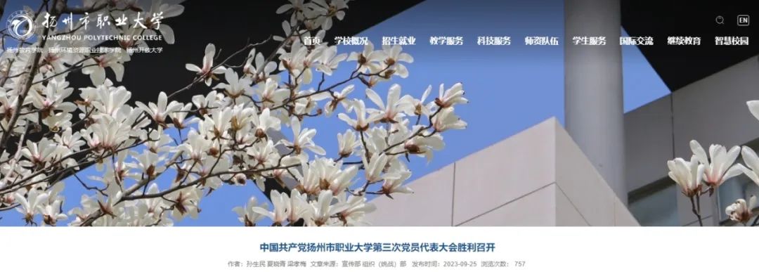 2023年9月,扬州市职业大学召开第三次党员代表大会。会议提出,该校未来五年建设新时代高水平职业大学。