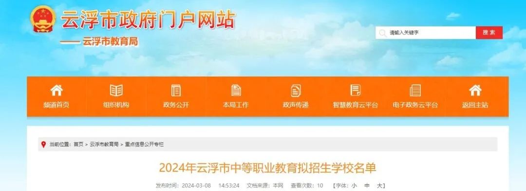 云浮市教育局2024年3月8日在网站上公布了《2024年云浮市中等职业教育拟招生学校名单》,云浮市内一共有10所中职学校具备教育局认可的官方招生资格。