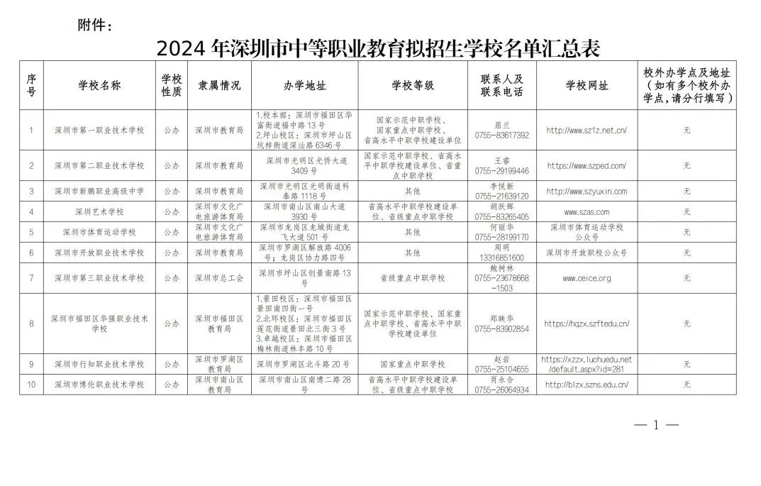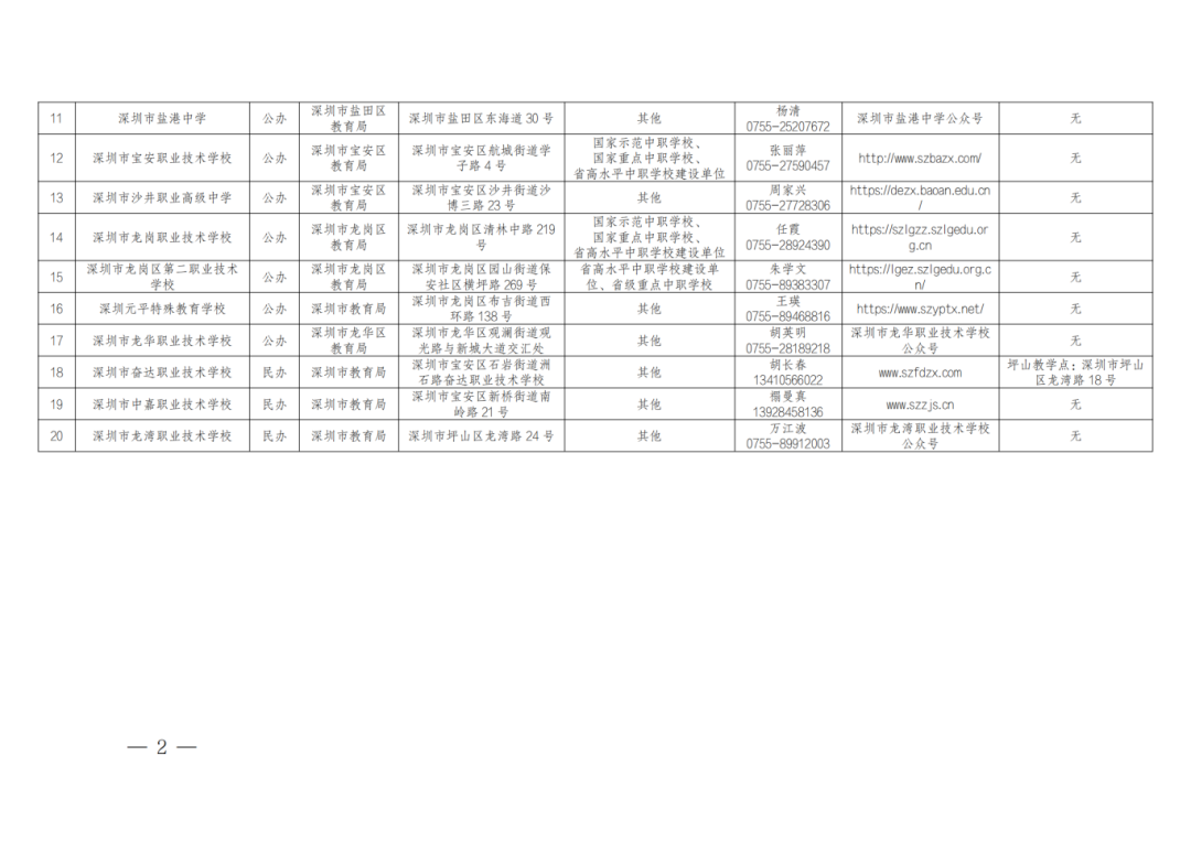 深圳市教育局2024年3月8日在网站上公布了《2024年广州市中等职业教育拟招生学校名单公示》。深圳市内共有20所中职学校受深圳市教育局官方认可。