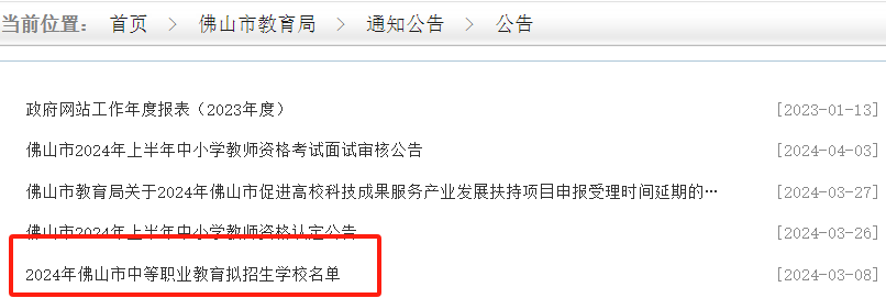 佛山市教育局2024年3月8日在网站上公布了《2024年佛山市中等职业教育拟招生学校名单》,佛山市内一共有25所中职学校具备教育局认可的官方招生资格!