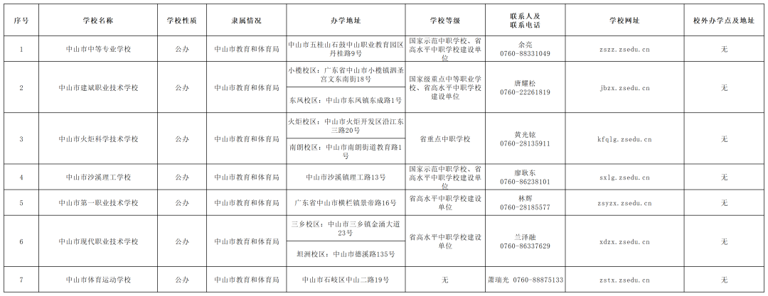 中山市内一共有7所中职学校具备教育局认可的官方招生资格,而且这7所中职学校都是公办学校噢!