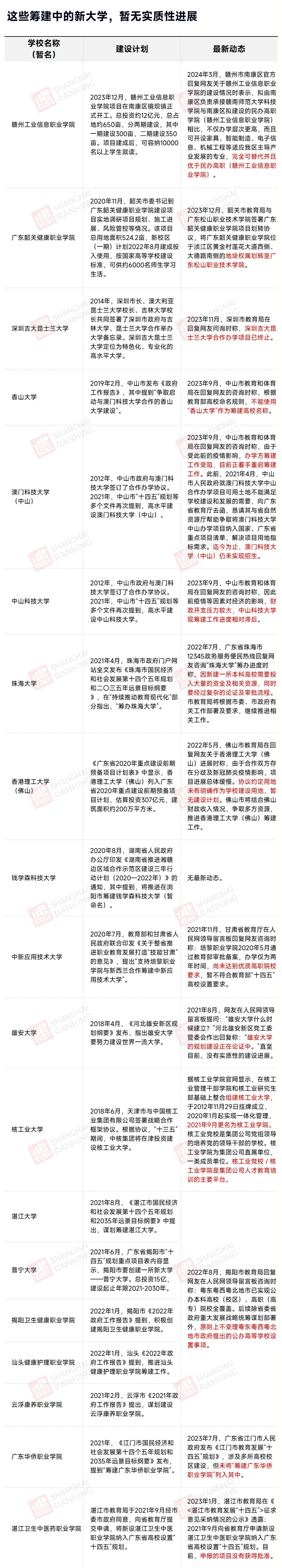 此前,曾被列入建设计划的珠海大学、普宁大学、湛江大学、汕头健康护理职业学院、揭阳卫生健康职业学院等,迎来未知的变数。