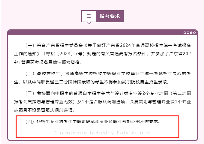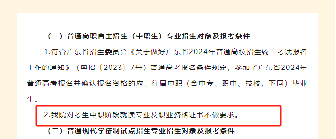 各招生专业对考生中职阶段就读专业及职业资格证书不做要求
