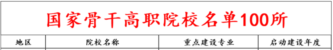 根据教育部和财政部联合下发的《关于进一步推进“国家示范性高等职业院校建设计划”实施工作的通知》,在原有已建设100所国家示范性高等职业院校的基础上,新增100所左右国家骨干高职院校,以此继续推进“国家示范性高等职业院校建设计划”。