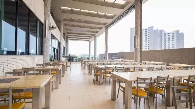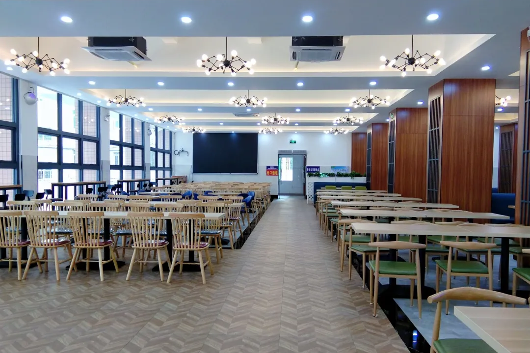 学校食堂一栋两层,一层为荔园食堂,特色为“智”助餐,食堂内采取自助的模式,可自主选择近百样菜品,通过智能无感支付系统对饭菜进行称重计价,一定能带给你与传统学生食堂不一样的体验;二层便是客语餐厅。