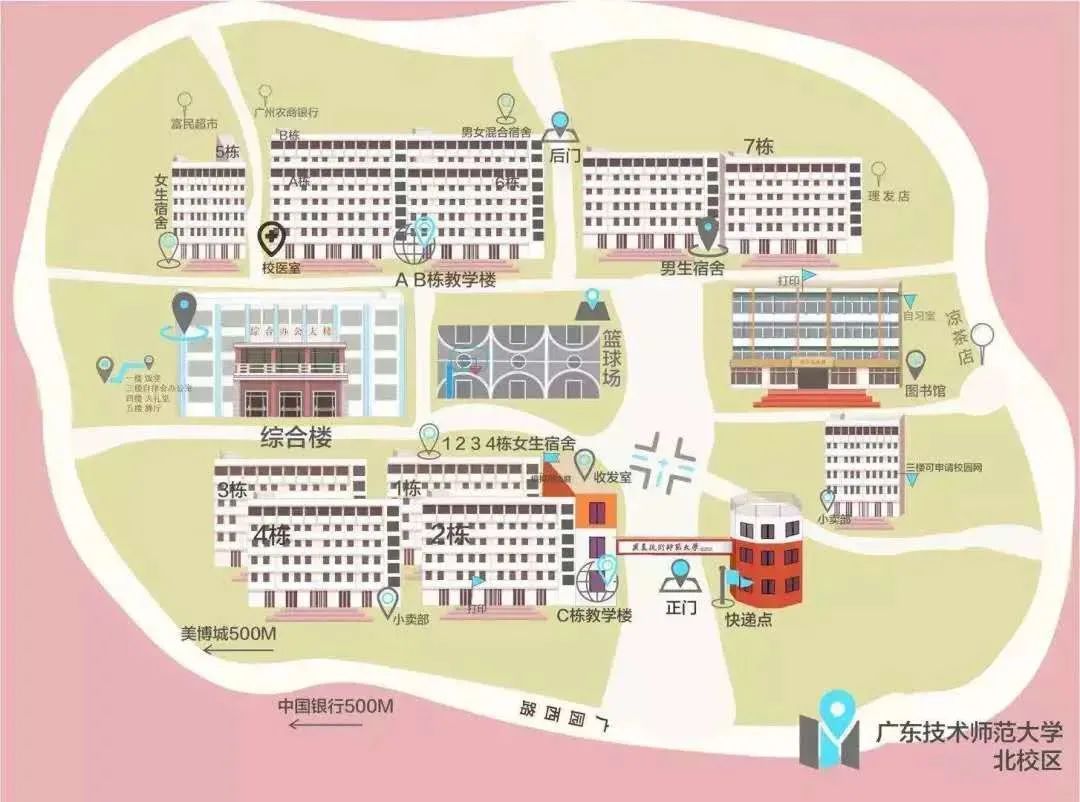 5-6栋靠近后街和篮球场;7-9栋宿舍较靠近足球场,去操场散步或者跑上几圈锻炼身体非常方便!