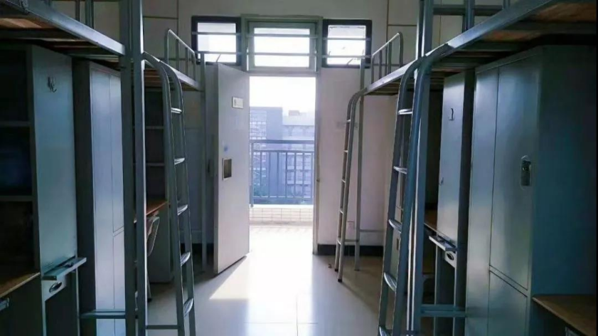 西区、北区:六人间、上下床、有六张桌椅、没有空调。每间宿舍有两个独立卫生间、一个浴室、带阳台。