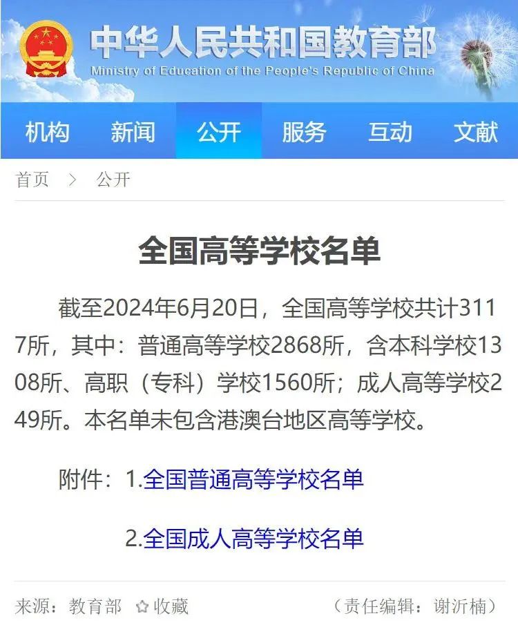 今年6月,教育部公布了,全国高等学校名单,截至2024年6月20[…]
