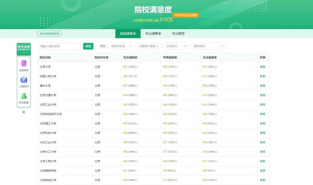 “院校专业满意度”是个很好的参照依据,但是此类投票仅代表学生的个人意见,主观性较强,所以大家理性看待。