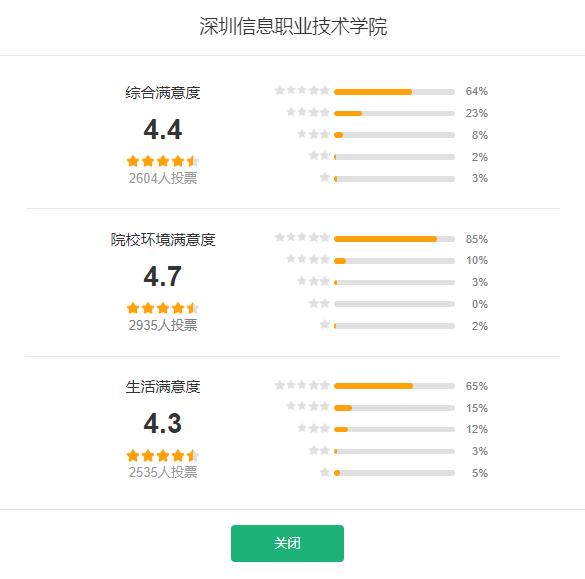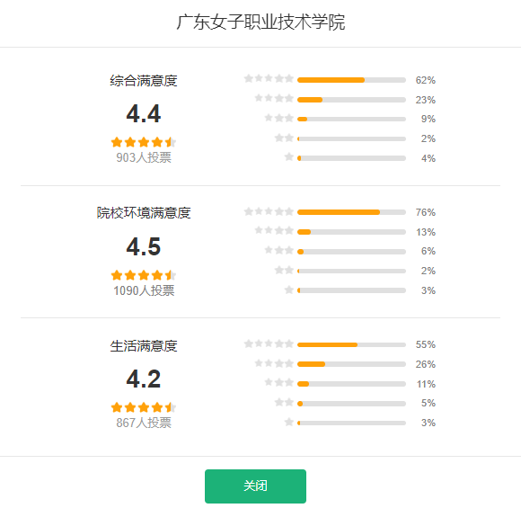 从上面的广东高校满意度投票中可以看出,满意度评分现了两极分化的情况。其中,学生对学校的综合评分,最高达4.4分,最低只有2.7分。而就算是满意度排名前三的院校,三个满意度指标也不乏给一星的情况。