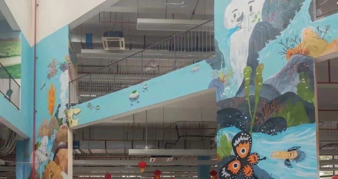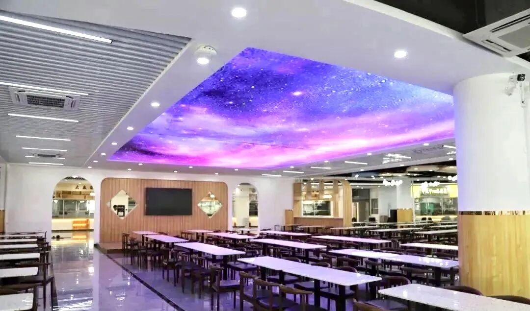 南方职院共有两个校区。其中,本校区饭堂采用时尚休闲的风格,在几处增添了墙壁全身圆镜的设计,以蓝色为基调,打造一个食堂特色点,随处一拍就是网红大片既视感。