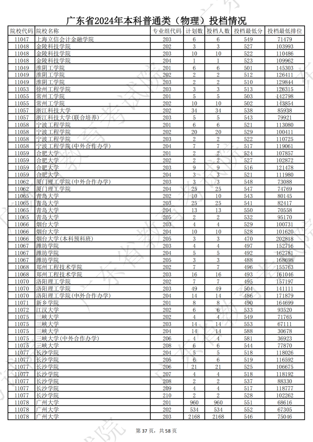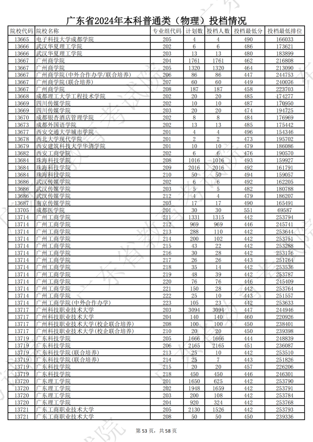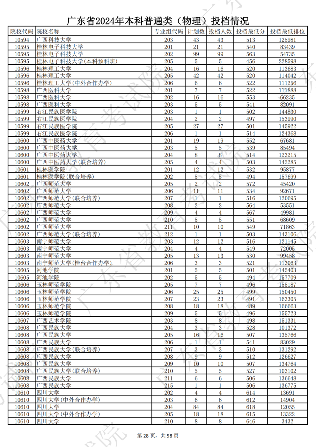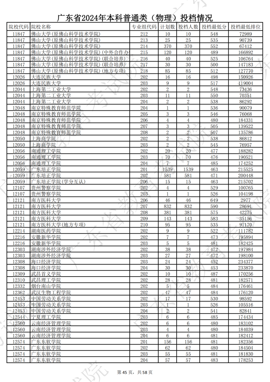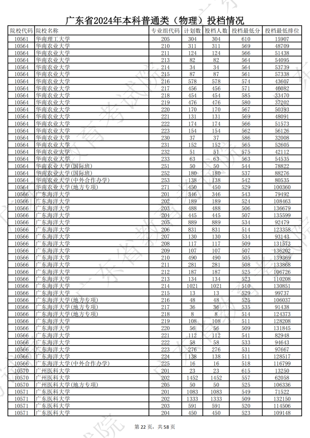 广东省2024年本科物理类投档情况