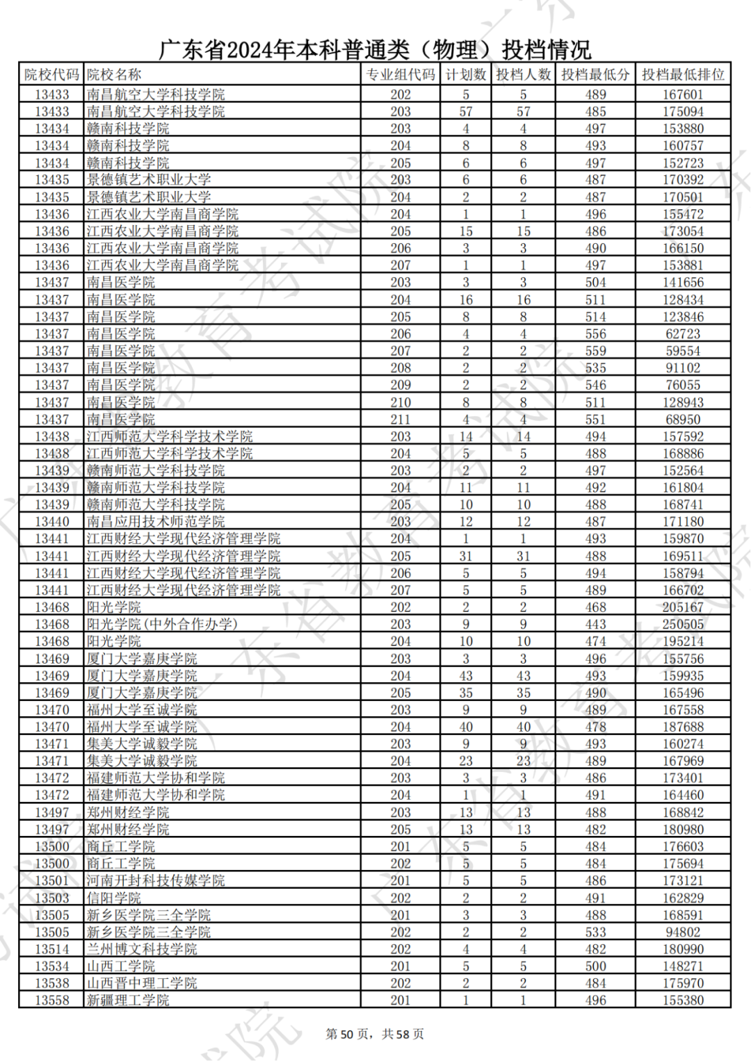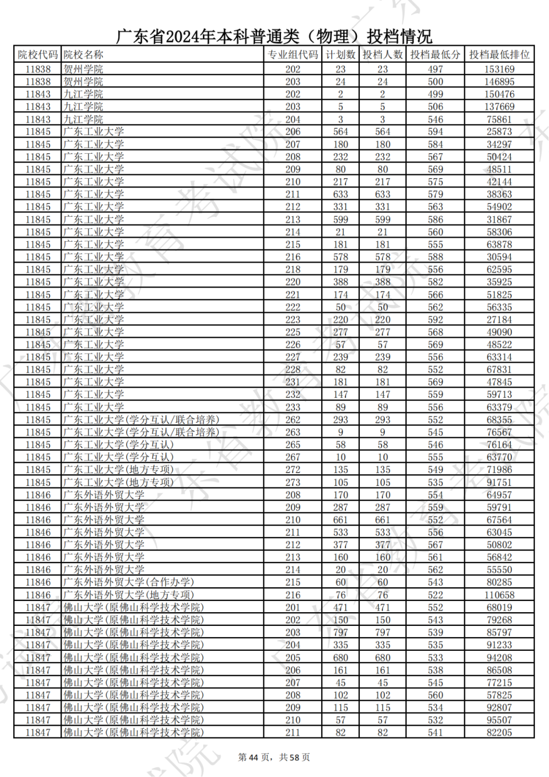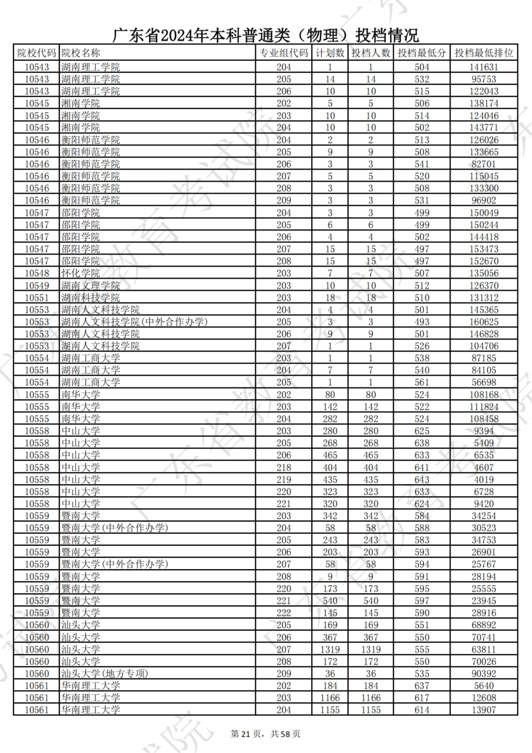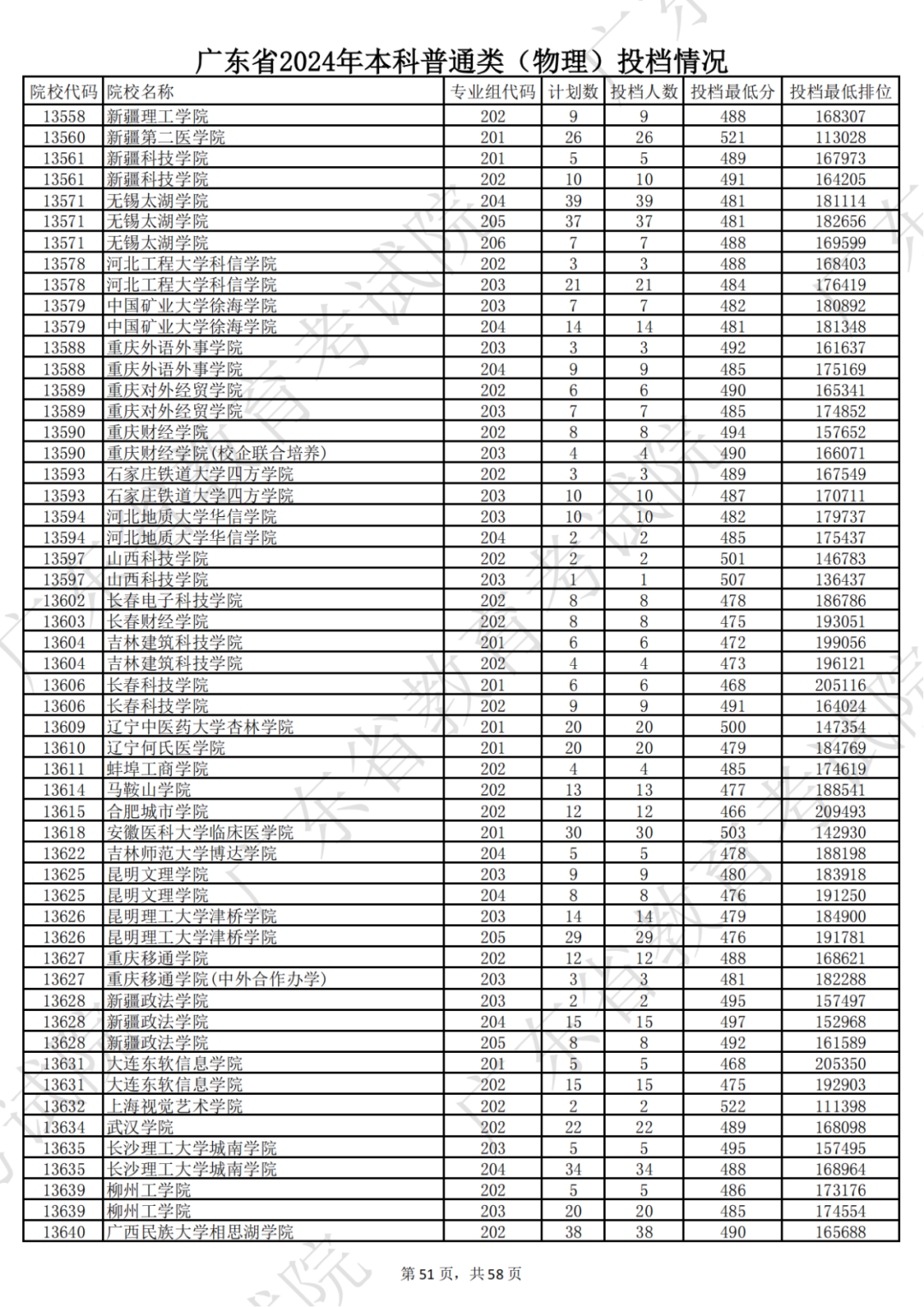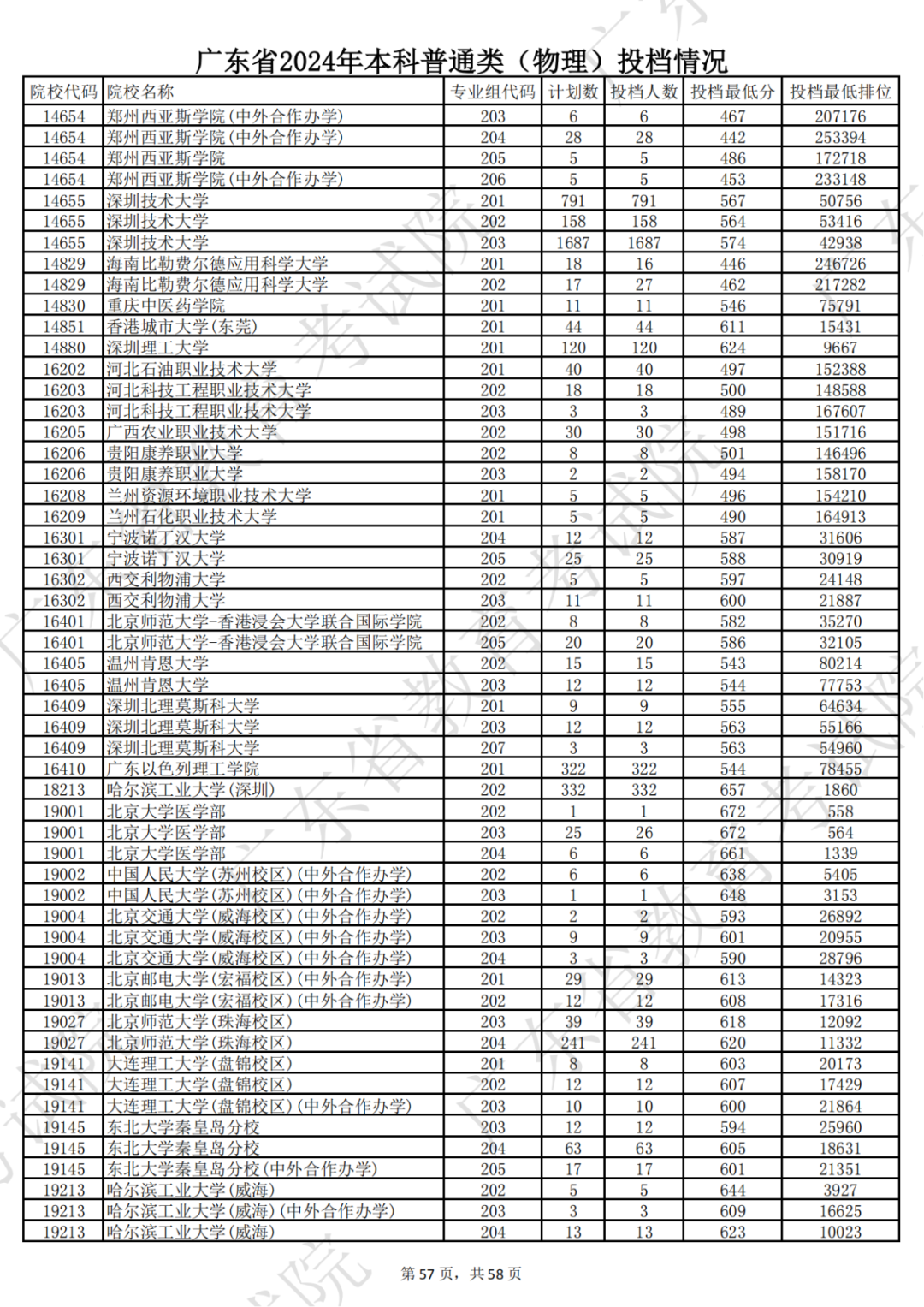 广东省2024年本科物理类投档情况