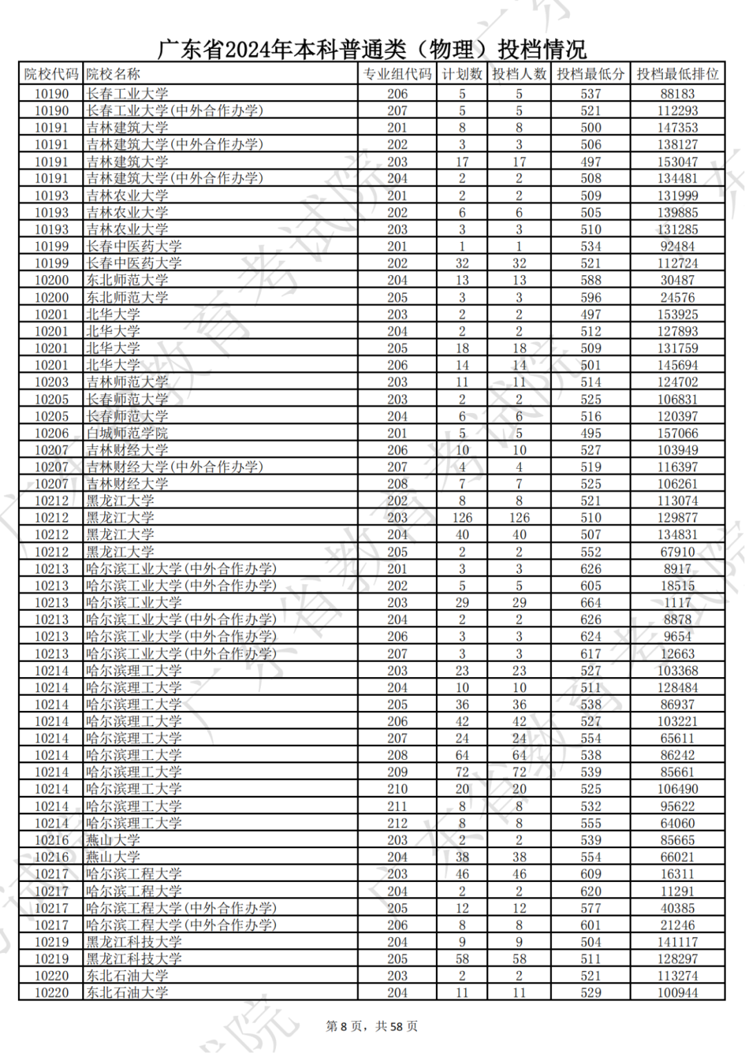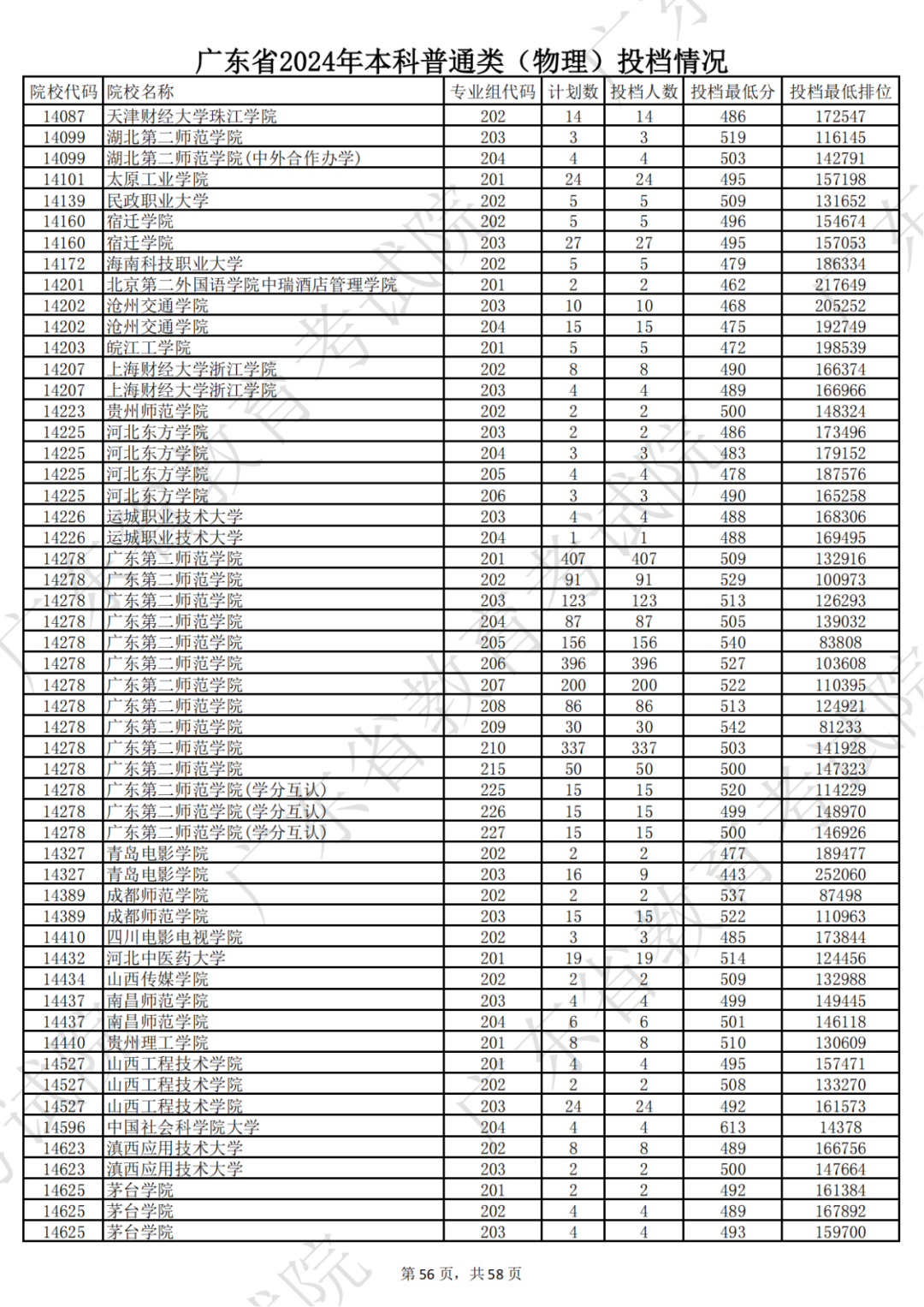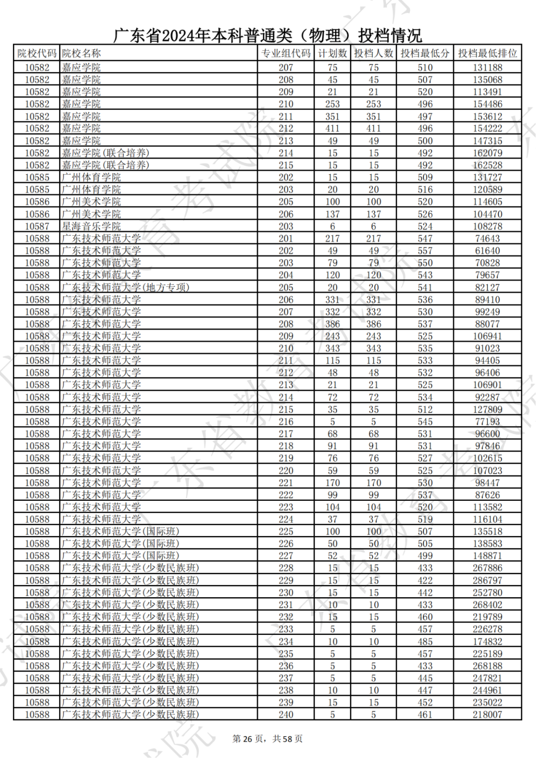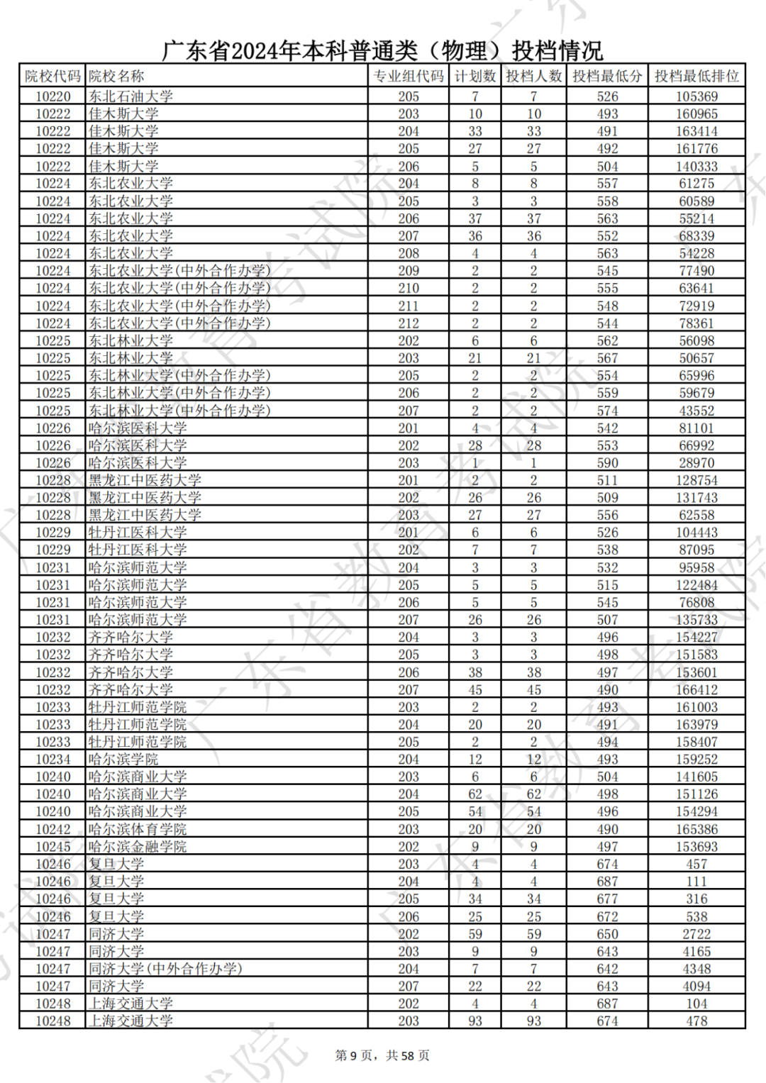 广东省2024年本科物理类投档情况